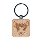 Deer Doe Wearing a Flower Crown Engraved Wood Square Keychain Tag Charm