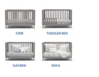 About this item GROWS WITH BABY: Crib converts to a toddler bed, daybed and sofa Daybed/Sofa Rail included; Toddler Guardrail 0094 sold separately Crib features stylish angled legs in solid pine with a natural finish ADJUSTABLE HEIGHT: Adjustable height mattress support with 3 convenient positions to grow with your baby COORDINATING ITEMS: Uses a standard size crib mattress sold separately , to ensure the perfect fit pair your crib with a Delta Children, Serta or Beautyrest crib mattress SIZE: Assembled Dimensions: 54"L x 29.50"D x 34"H | Easy to assemble WE PUT YOUR BABY’S SAFETY FIRST: JPMA Certified to meet or exceed all safety standards set by ASTM | Tested for lead and other toxic elements to meet or exceed government and ASTM safety standards Product Description The Essex 4-in-1 Convertible Baby Crib by Delta Children is designed to elevate modern nurseries . It features gently curved corners and splayed feet in a natural finish for some retro- cool contrast . The adjustable height mattress allows this crib to grow alongside your little one —start with the mattress at the highest level , then lower it as your baby begins to sit or stand . Once your child outgrows the crib , convert it to a toddler bed , daybed or sofa. To complete your mid-century modern nursery , pair the Essex 4-in-1 Crib with the Essex Changing Table / Bookcase by Delta Children . Delta Children was founded around the idea of making safe , high-quality cribs affordable for all families . That's why all Delta Children cribs are JPMA certified , and are tested above and beyond industry standards Available in 2 colors . Grey and White. For White Color https://www.ebay.com/itm/394166567484 Adjustable Mattress Height Yes Bed Conversion Type Daybed Toddler Bed Full Sized Bed Brand Delta Children Certifications Meets CPSC Standards Meets ASTM Standards JPMA Certified Dimensions 54 x 29.5 x 34 inches Material Pine Wood Maximum Age Recommendation 15 Maximum Age Recommendation Unit Of Measure Months Maximum Weight Recommendation Unit Of Measure lbs. Minimum Age Recommendation 0 Minimum Age Recommendation Unit Of Measure Months Type 4-in-1 Weight 56 lbs.