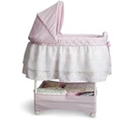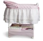 Variable speed vibration; Music lulls your little one to sleep; Nightlight make it easy to care for baby Large storage basket provides ample storage for all things baby; Adjustable, removable canopy blocks light Gliding base; a gentle push activates the gliding motion Locking wheel make it easy to move from room to room; Includes a fitted sheet and a 1" water-resistant pad Dimensions: 45.5"L x 32"W x 17.5"H; Requires 4 AA batteries (not included); JPMA certified to meet or exceed all safety standards set by ASTM