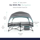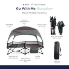 About this item ON-THE-GO TRAVEL COT: As a parent, we know that life takes you many different places. So, we designed the Go With Me Bungalow to fit into a portable carry bag. Simply unpack it from the bag, expand the cot, lock it into place, and attach the canopy. MAXIMUM SAFETY & STYLE: Our strong and stable metal frame locks into place and keeps the cot secure wherever it goes. You shouldn’t have to sacrifice style for safety. That is why we created this neutral-colored Bungalow Deluxe to fit in any home’s décor. FOR ANYWHERE: The Bungalow portable travel cot is really meant to travel with you. Whether it’s camping trips, backyard BBQs, beach days, or overnights visiting family, we’ve got you covered. VERSATILE DESIGN: Our travel cot is made with durable indoor and outdoor fabric and surrounded by mesh walls to provide an added barrier of security. There is also a storage pocket and a removable sun canopy. Recommended weight is up to 75 lbs. DESIGNED IN USA: Trusted by parents for over 20 years. Locally owned and operated in Rhode Island, USA. Recommended Age: 15+ months From the manufacturer Go With Me Bungalow Go With Me Travel Line Our Go With Me line of travel gear is perfect for families on the go. Each product folds and unfolds in just seconds, making set-up and break-down a breeze. Each item also comes with a convenient carry bag so you can throw it over your shoulder leaving your hands free to carry more important things, like your little one! Go With Me Uplift Portable High Chair Go With Me Eclipse Portable Playard with Canopy Go With Me Venture Portable Chair Go With Me Haven Portable Playard Go With Me Bungalow Deluxe Portable Travel Cot The Bungalow can be used inside for naptime, playtime or sleepovers and outside for camping or beach trips. With its durable indoor/outdoor fabric, the Bungalow is made to weather the outdoor elements and messes since the fabric can easily be wiped clean. The locking, sturdy metal frame can support children up to 75lbs, while the surrounding mesh walls provide added security for your little one. Removable canopy blocks 98% of UVA and UVB rays Frame is made of sturdy metal and locks into place for added security Folds up in seconds Store or transport the Bungalow in the included travel bag Dimensions: 50 x 26 x 16.25 | 50 x 26 x 41.5 w/canopy Age Recommendation: 15+ months and up to 75lbs Product Features & Details Use Inside. The Bungalow can be used inside for all sorts of things! Naptime Sleepovers Movie nights Hotels And most importantly... for the toddler who just needs to sleep near Mom & Dad every night Use Outside. Whether it's for lounging in the back yard, a beach day or a camping trip your little one will love having their own spot to lounge and/or nap. Use Together. The Bungalow holds up to 75 lbs, so it's study enough to safely hold two of your little ones. Because everything is better with a friend, right? Get Up and Go! Just like the rest of our Go With Me line, the Bungalow quickly folds up and fits into the included carry bag. In just seconds you'll be off and ready for your next adventure! About Baby Delight At Baby Delight we believe in bringing parents closer to their families as they experience all of the bumps in the road along the way. Let’s face it, being a parent is hard. Like, really hard. But it’s also the most rewarding thing we’ll ever do. Most of us here at Baby Delight are parents, so we understand each and every aspect of the job. We know the ups. We know the downs. And we are very familiar with everything in between. When we come up with product ideas and begin the development process, we are not only thinking about the babies and children that will be using our products. We’re thinking of you. The mom. The dad. The caregiver. Our bassinets, crib and loungers are comfortable and safe for your little ones while providing you with some peace of mind. And our gear products are durable, versatile and portable. Ideal for both you and your babe. We understand that parenthood is a journey. Each day is an adventure. Let us help make yours just a little bit easier. Product Description Make traveling with your toddler fun and easy with the go with Me Bungalow portable travel cot! The Bungalow can be used inside for naptime, playtime or sleepovers and outside for camping or beach trips. The included canopy blocks 98% of UVA and UVB rays and can easily be removed for indoor use. With its durable indoor/Outdoor fabric, the Bungalow is made to weather The outdoor elements and messes since the fabric can easily be wiped clean. The locking, sturdy metal frame can support children up to 72lbs, while the surrounding mesh walls provide added security for your little one. The Bungalow and removable canopy fold up in just seconds and can easily be stored or transported in the included carry bag.