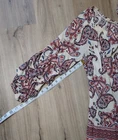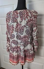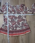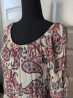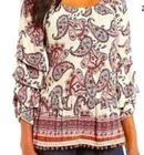 Used in great condition. Please see pictures for details and measurements laying flat. Elevate your wardrobe with the Democracy Women's Paisley Blouse, a versatile piece that embodies a blend of casual charm and subtle sophistication. The blouse features an eye-catching paisley pattern with an elegant scoop neckline, ideal for transitioning from business meetings to casual outings or evening cocktails. With its 3/4 tiered sleeves and playful pom-pom accents, this multicolored top adds a touch of bohemian flair to any ensemble. Crafted from soft, breathable rayon, this knit blouse promises comfort for all seasons. The lightweight fabric makes it perfect for layering or standalone wear, whether you're traveling or enjoying a day at the office.