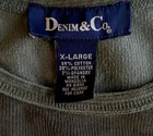 Denim & Co Top Womens XL Extra-Large Green Long Sleeve Pullover Velour Shirt Excellent pre-owned condition. No visible flaws. -59% Cotton/38% Polyester/3% Spandex -Soft Stretch Fabric -Pullover -Machine Wash Cold -SKU E24-485 -Measurements in Photos Questions? Please ask. Ships next business day. Offers welcome.