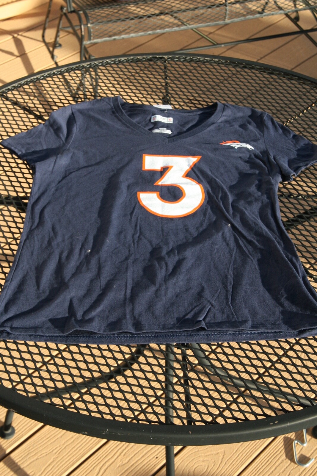 Women's L V-neck Denver Broncos Wilson #3 T-Shirt New with tags Great gift for the Bronco Fan ! To upcycle, I reuse shipping material as often as possible. Buy more from my store and save on shipping.