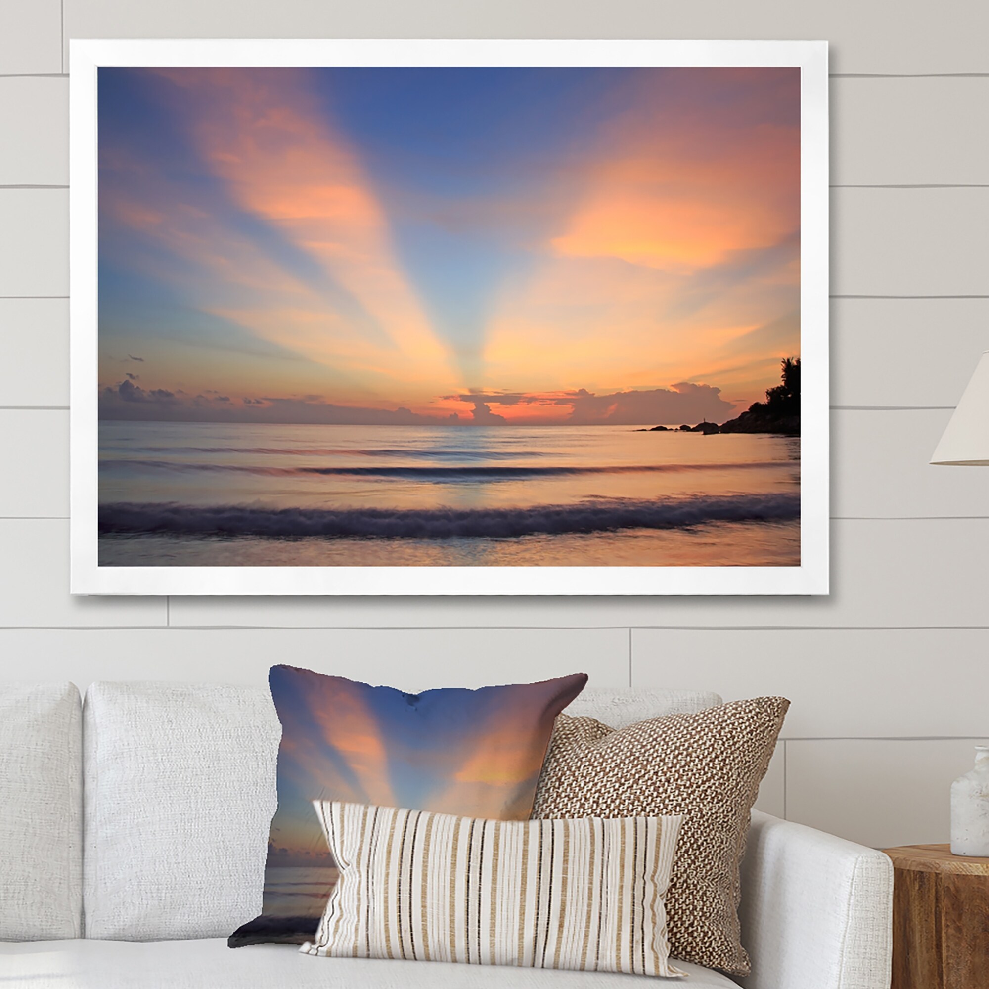 This beautiful Beach Sunrise With Dramatic Sky XV Framed wall Art is printed using the highest quality fade resistant ink on canvas. Every one of our Framed Giclee Prints is printed on premium quality canvas, using the finest quality inks which will not fade over time and then mounted and framed on a 1.5 inch wide frame.This framed art print is available in many different color frames. All of our framed art prints are carefully packaged with corner protectors, fragile labeling, and sturdy boxes to ensure a safe delivery. Every framed art arrives ready to hang on the wall, with the hanging kit included.Features:- Style : Nautical & Coastal- Subject : sea & Shore, Nautical & Beach,Beach & Ocean- Color : Orange- Premium quality cotton canvas mounted.- Available in several frame colors. - Free Shipping Over $49.99* Details Designart "Beach Sunrise With Dramatic Sky XV" Nautical & Coastal Framed Wall Product Description: This beautiful Beach Sunrise With Dramatic Sky XV Framed wall Art is printed using the highest quality fade resistant ink on canvas. Every one of our Framed Giclee Prints is printed on premium quality canvas, using the finest quality inks which will not fade over time and then mounted and framed on a 1.5 inch wide frame. This framed art print is available in many different color frames. All of our framed art prints are carefully packaged with corner protectors, fragile labeling, and sturdy boxes to ensure a safe delivery. Every framed art arrives ready to hang on the wall, with the hanging kit included. Features: - Style Nautical & Coastal - Subject sea & Shore, Nautical & Beach,Beach & Ocean - Color Orange - Premium quality cotton canvas mounted. - Available in several frame colors. - Arrives with instructions and hanging kit