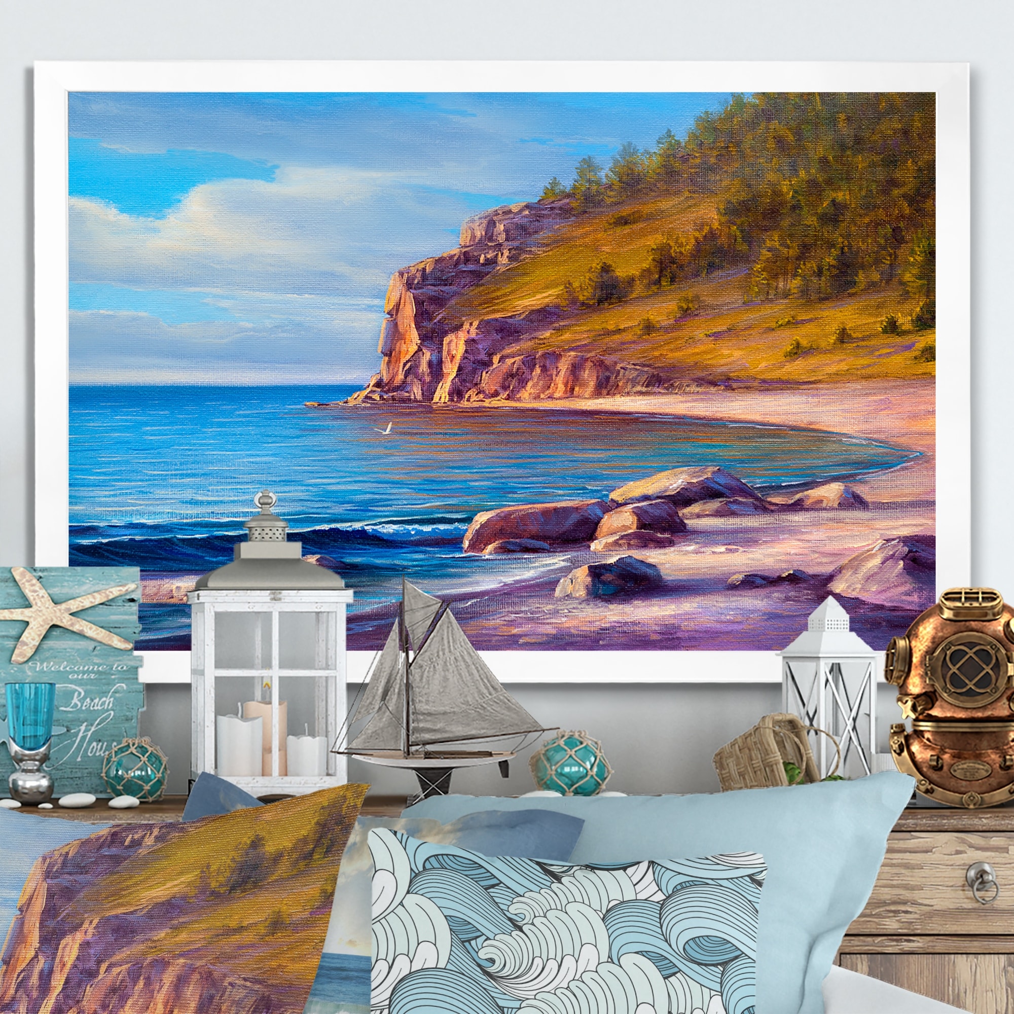 This beautiful Beautiful Beach On Ocean Shore II Framed wall Art is printed using the highest quality fade resistant ink on canvas. Every one of our Framed Giclee Prints is printed on premium quality canvas, using the finest quality inks which will not fade over time and then mounted and framed on a 1.5 inch wide frame.This framed art print is available in many different color frames. All of our framed art prints are carefully packaged with corner protectors, fragile labeling, and sturdy boxes to ensure a safe delivery. Every framed art arrives ready to hang on the wall, with the hanging kit included.Features:- Style : Nautical & Coastal- Subject : Beach, Nautical & Beach, Beach & Ocean- Color : Blue- Premium quality cotton canvas mounted.- Available in several frame colors. - Arrives Free Shipping Over $49.99* Details Designart "Beautiful Beach On Ocean Shore II" Nautical & Coastal Framed artwork Product Description: This beautiful Beautiful Beach On Ocean Shore II Framed wall Art is printed using the highest quality fade resistant ink on canvas. Every one of our Framed Giclee Prints is printed on premium quality canvas, using the finest quality inks which will not fade over time and then mounted and framed on a 1.5 inch wide frame. This framed art print is available in many different color frames. All of our framed art prints are carefully packaged with corner protectors, fragile labeling, and sturdy boxes to ensure a safe delivery. Every framed art arrives ready to hang on the wall, with the hanging kit included. Features: - Style Nautical & Coastal - Subject Beach, Nautical & Beach, Beach & Ocean - Color Blue - Premium quality cotton canvas mounted. - Available in several frame colors. - Arrives with instructions and hanging kit