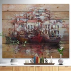 Alas, a modern take on wood wall art. Once typically a wall art piece found only in rustic or farmhouse style decor settings, this Sea & Shore wood wall art will easily fit into even the most contemporary of designs.Using the highest quality 6 Color Canon UV Ink, this Nautical & Coastal wood wall art incorporates several aspects of fine design into one stunning piece. With its slightly visible wood grain appearing through the colors and sleekly finished edges, it is a wonderful choice for any room in your home or office, being it a traditional or modern space. As each piece of wood has natural grain differences from the next, each of these wood wall arts is a truly unique addition to your space.Each Wood wall art is 100% handmade in Canada on Natural pine wood, using the highest quality Free Shipping Over $49.99* Details Designart 'Four Boats At Pier Near Village' Sea & Shore Print on Natural Pine Product Description: Alas, a modern take on wood wall art. Once typically a wall art piece found only in rustic or farmhouse style decor settings, this Sea & Shore wood wall art will easily fit into even the most contemporary of designs. Using the highest quality 6 Color Canon UV Ink, this Nautical & Coastal wood wall art incorporates several aspects of fine design into one stunning piece. With its slightly visible wood grain appearing through the colors and sleekly finished edges, it is a wonderful choice for any room in your home or office, being it a traditional or modern space. As each piece of wood has natural grain differences from the next, each of these wood wall arts is a truly unique addition to your space. Each Wood wall art is 100% handmade in Canada on Natural pine wood, using the highest quality ink which will not fade over time. Available in 3 Differents sizes 20x15, 40x30, 46x36 - OrientationHorizontal - SubjectSea & Shore TypeWood Wall Art, Fine Art, Wood Fine Art, Print on Plaque - Arrives ready to hang on the wall with hanging kit included - MaterialMade with 100% natural pine wood - StyleNautical & Coastal- Number of Pieces1 - SizeMedium, Large, Small - ColorBrown