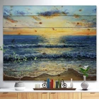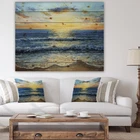 Alas, a modern take on wood wall art. Once typically a wall art piece found only in rustic or farmhouse style decor settings, this Beach wood wall art will easily fit into even the most contemporary of designs.Using the highest quality 6 Color Canon UV Ink, this Nautical & Coastal wood wall art incorporates several aspects of fine design into one stunning piece. With its slightly visible wood grain appearing through the colors and sleekly finished edges, it is a wonderful choice for any room in your home or office, being it a traditional or modern space. As each piece of wood has natural grain differences from the next, each of these wood wall arts is a truly unique addition to your space.Each Wood wall art is 100% handmade in Canada on Natural pine wood, using the highest quality ink Free Shipping Over $49.99* Details Designart 'Ocean And Waves At Sunrise' Nautical & Coastal Wood Wall Art Panels - Product Description: Alas, a modern take on wood wall art. Once typically a wall art piece found only in rustic or farmhouse style decor settings, this Beach wood wall art will easily fit into even the most contemporary of designs. Using the highest quality 6 Color Canon UV Ink, this Nautical & Coastal wood wall art incorporates several aspects of fine design into one stunning piece. With its slightly visible wood grain appearing through the colors and sleekly finished edges, it is a wonderful choice for any room in your home or office, being it a traditional or modern space. As each piece of wood has natural grain differences from the next, each of these wood wall arts is a truly unique addition to your space. Each Wood wall art is 100% handmade in Canada on Natural pine wood, using the highest quality ink which will not fade over time. Available in Differents sizes - OrientationHorizontal - SubjectBeach TypeWood Wall Art, Fine Art, Wood Fine Art, Print on Plaque - Arrives ready to hang on the wall with hanging kit included - MaterialMade with 100% natural pine wood - StyleNautical & Coastal - Number of Pieces1 - ColorBlue