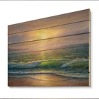 Alas, a modern take on wood wall art. Once typically a wall art piece found only in rustic or farmhouse style decor settings, this Beach wood wall art will easily fit into even the most contemporary of designs.Using the highest quality 6 Color Canon UV Ink, this Nautical & Coastal wood wall art incorporates several aspects of fine design into one stunning piece. With its slightly visible wood grain appearing through the colors and sleekly finished edges, it is a wonderful choice for any room in your home or office, being it a traditional or modern space. As each piece of wood has natural grain differences from the next, each of these wood wall arts is a truly unique addition to your space.Each Wood wall art is 100% handmade in Canada on Natural pine wood, using the highest quality ink Free Shipping Over $49.99* Details Designart 'Ocean Sunset And Waves II' Nautical & Coastal Wood Wall Art - Natural Product Description: Alas, a modern take on wood wall art. Once typically a wall art piece found only in rustic or farmhouse style decor settings, this Beach wood wall art will easily fit into even the most contemporary of designs. Using the highest quality 6 Color Canon UV Ink, this Nautical & Coastal wood wall art incorporates several aspects of fine design into one stunning piece. With its slightly visible wood grain appearing through the colors and sleekly finished edges, it is a wonderful choice for any room in your home or office, being it a traditional or modern space. As each piece of wood has natural grain differences from the next, each of these wood wall arts is a truly unique addition to your space. Each Wood wall art is 100% handmade in Canada on Natural pine wood, using the highest quality ink which will not fade over time. Available in Differents sizes - OrientationHorizontal - SubjectBeach TypeWood Wall Art, Fine Art, Wood Fine Art, Print on Plaque - Arrives ready to hang on the wall with hanging kit included - MaterialMade with 100% natural pine wood - StyleNautical & Coastal - Number of Pieces1 - ColorBlue