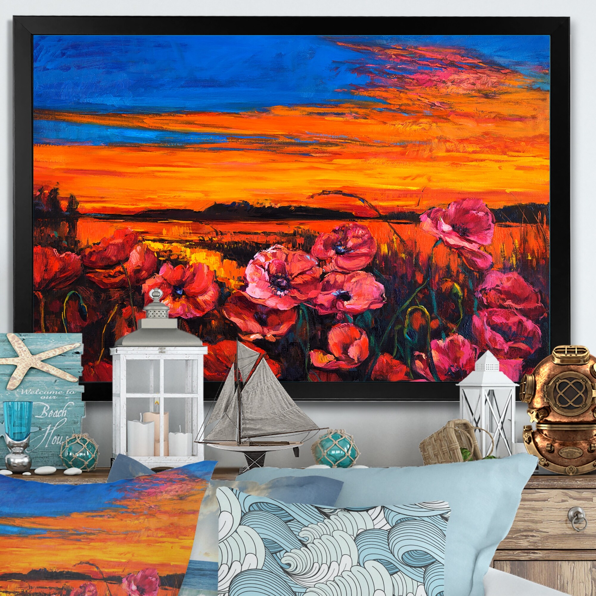 This beautiful Poppy Fields Painting II Framed wall Art is printed using the highest quality fade resistant ink on canvas. Every one of our Framed Giclee Prints is printed on premium quality canvas, using the finest quality inks which will not fade over time and then mounted and framed on a 1.5 inch wide frame.This framed art print is available in many different color frames. All of our framed art prints are carefully packaged with corner protectors, fragile labeling, and sturdy boxes to ensure a safe delivery. Every framed art arrives ready to hang on the wall, with the hanging kit included.Features:- Style : Nautical & Coastal- Subject : Floral, Nautical & Beach, Beach & Ocean- Color : Pink- Premium quality cotton canvas mounted.- Available in several frame colors. - Arrives with Free Shipping Over $49.99* Details Designart "Poppy Fields Painting II" Nautical & Coastal Framed Wall Art Product Description: This beautiful Poppy Fields Painting II Framed wall Art is printed using the highest quality fade resistant ink on canvas. Every one of our Framed Giclee Prints is printed on premium quality canvas, using the finest quality inks which will not fade over time and then mounted and framed on a 1.5 inch wide frame. This framed art print is available in many different color frames. All of our framed art prints are carefully packaged with corner protectors, fragile labeling, and sturdy boxes to ensure a safe delivery. Every framed art arrives ready to hang on the wall, with the hanging kit included. Features: - Style Nautical & Coastal - Subject Floral, Nautical & Beach, Beach & Ocean - Color Pink - Premium quality cotton canvas mounted. - Available in several frame colors. - Arrives with instructions and hanging kit