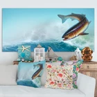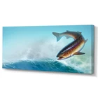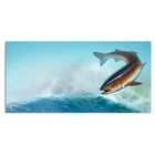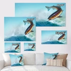 This beautiful Rainbow Trout Fish Jumping Out Of The Sea Canvas Art is printed using the highest quality fade resistant ink on canvas. Every one of our fine art giclee canvas prints is printed on premium quality cotton canvas, using the finest quality inks which will not fade over time. Each giclee print is stretched tightly over a 1 inch wood sub frame for small size prints or a 1.5 inch wood sub frame for large size prints (40x30 60x28 ...) ensuring the canvas is taught and does not buckle. This canvas art print is gallery-wrapped (the design continues on the sides) , giving it a real art gallery feel. All of our canvas prints are carefully packaged with plastic protection, fragile labeling and sturdy boxes to ensure a safe delivery. Every canvas print arrives ready to hang on the wall, Free Shipping Over $49.99* Details Designart "Rainbow Trout Fish Jumping Out Of The Sea" Animals Canvas Wall Art Product Description: This beautiful Rainbow Trout Fish Jumping Out Of The Sea Canvas Art is printed using the highest quality fade resistant ink on canvas. Every one of our fine art giclee canvas prints is printed on premium quality cotton canvas, using the finest quality inks which will not fade over time. Each giclee print is stretched tightly over a 1 inch wood sub frame for small size prints or a 1.5 inch wood sub frame for large size prints (40x30 60x28 ...) ensuring the canvas is taught and does not buckle. This canvas art print is gallery-wrapped (the design continues on the sides) , giving it a real art gallery feel. All of our canvas prints are carefully packaged with plastic protection, fragile labeling and sturdy boxes to ensure a safe delivery. Every canvas print arrives ready to hang on the wall, with the hanging kits included. - Style Nautical & Coastal - Subject Animals, Animals, Fish - Color Blue - This canvas giclee print is gallery-wrapped (the design continues on the sides) , giving it a real art gallery feel. - Premium quality cotton canvas. - Arrives ready to hang on the wall - Easy to Hang