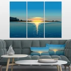 This beautiful Sea & Shore Canvas Art is printed using the highest quality fade resistant ink on canvas. Every one of our fine art giclee canvas prints is printed on premium quality cotton canvas, using the finest quality inks which will not fade over time. Each giclee print is stretched tightly over a 1 inch wood sub frame ensuring the canvas is taught and does not buckle. This canvas art print is gallery-wrapped (the design continues on the sides) , giving it a real art gallery feel. All of our canvas prints are carefully packaged with plastic protection, fragile labeling and sturdy boxes to ensure a safe delivery. Every canvas print arrives ready to hang on the wall, with the hanging kits included.- Style : Nautical & Coastal- Subject : Sea & Shore, Nautical- Color : Blue- This canvas Free Shipping Over $49.99* Details Designart "Sea Sinking Sun" Seascape Canvas Art Print - 36x28 - 3 Panels Product Description: This beautiful Sea & Shore Canvas Art is printed using the highest quality fade resistant ink on canvas. Every one of our fine art giclee canvas prints is printed on premium quality cotton canvas, using the finest quality inks which will not fade over time. Each giclee print is stretched tightly over a 1 inch wood sub frame ensuring the canvas is taught and does not buckle. This canvas art print is gallery-wrapped (the design continues on the sides) , giving it a real art gallery feel. All of our canvas prints are carefully packaged with plastic protection, fragile labeling and sturdy boxes to ensure a safe delivery. Every canvas print arrives ready to hang on the wall, with the hanging kits included. - Style Nautical & Coastal - Subject Sea & Shore, Nautical - Color Blue - This canvas giclee print is gallery-wrapped (the design continues on the sides) , giving it a real art gallery feel. - Premium quality cotton canvas. - Arrives ready to hang on the wall - Easy to Hang