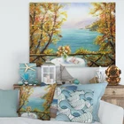 This beautiful Nautical & Coastal Canvas Art is printed using the highest quality fade resistant ink on canvas. Every one of our fine art giclee canvas prints is printed on premium quality cotton canvas, using the finest quality inks which will not fade over time. Each giclee print is stretched tightly over a 1 inch wood sub frame for small size prints or a 1.5 inch wood sub frame for large size prints (40x30 36x36 ...) ensuring the canvas is taught and does not buckle. This canvas art print is gallery-wrapped (the design continues on the sides) , giving it a real art gallery feel. All of our canvas prints are carefully packaged with plastic protection, fragile labeling and sturdy boxes to ensure a safe delivery. Every canvas print arrives ready to hang on the wall, with the hanging kits Free Shipping Over $49.99* Details Designart "Terrace VIew By The Blue Ocean" Nautical & Coastal Canvas Wall Art Product Description: This beautiful Nautical & Coastal Canvas Art is printed using the highest quality fade resistant ink on canvas. Every one of our fine art giclee canvas prints is printed on premium quality cotton canvas, using the finest quality inks which will not fade over time. Each giclee print is stretched tightly over a 1 inch wood sub frame for small size prints or a 1.5 inch wood sub frame for large size prints (40x30 36x36 ...) ensuring the canvas is taught and does not buckle. This canvas art print is gallery-wrapped (the design continues on the sides) , giving it a real art gallery feel. All of our canvas prints are carefully packaged with plastic protection, fragile labeling and sturdy boxes to ensure a safe delivery. Every canvas print arrives ready to hang on the wall, with the hanging kits included. - Style Nautical & Coastal,Tropical - Subject Beach, Landscapes - Color Blue, - This canvas giclee print is gallery-wrapped (the design continues on the sides) , giving it a real art gallery feel. - Premium quality cotton canvas. - Arrives ready to hang on the wall - Easy to Hang