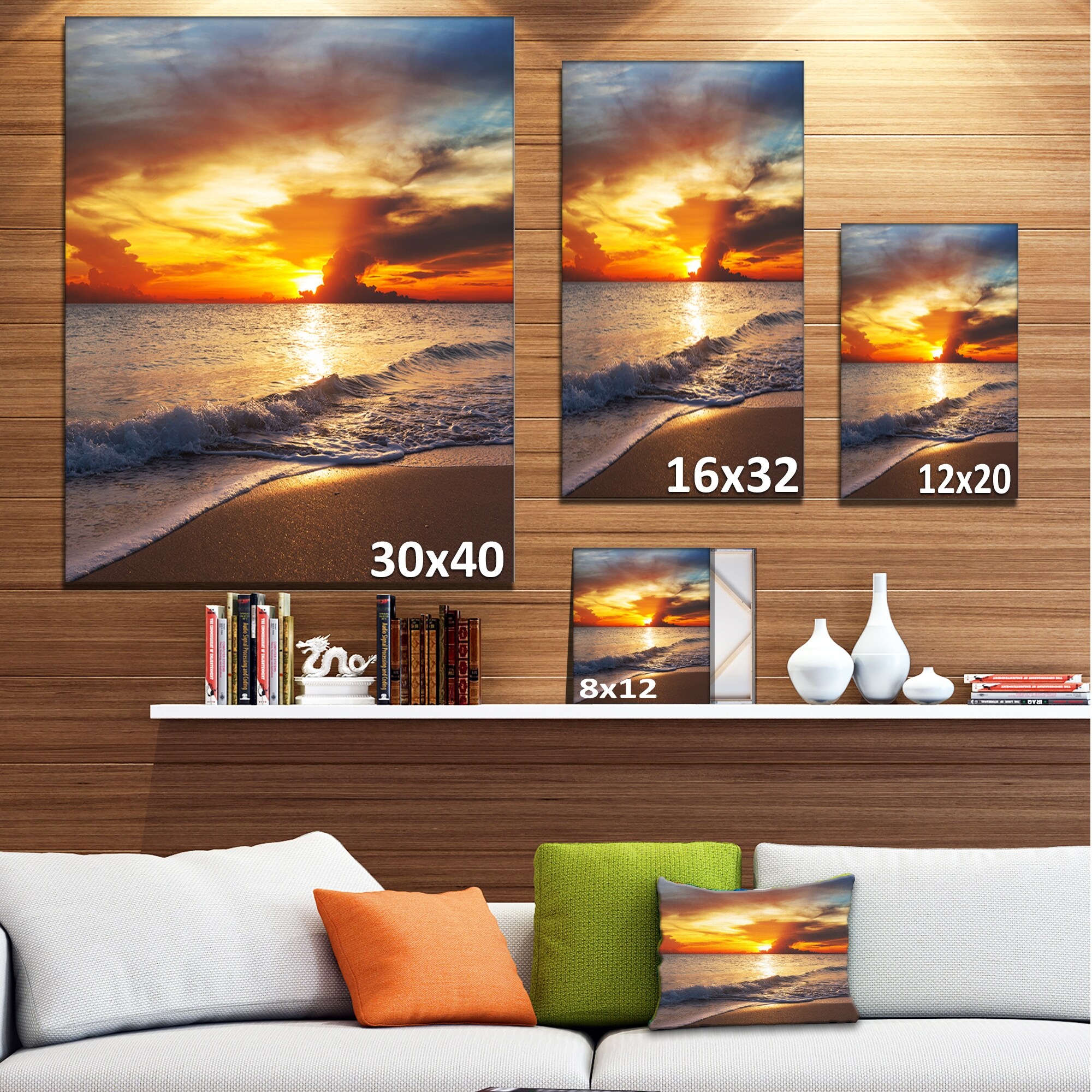 This beautiful Sea & Shore Canvas Art is printed using the highest quality fade resistant ink on canvas. Every one of our fine art giclee canvas prints is printed on premium quality cotton canvas, using the finest quality inks which will not fade over time. Each giclee print is stretched tightly over a 1 inch wood sub frame for small size prints or a 1.5 inch wood sub frame for large size prints (40x30 60x28 ...) ensuring the canvas is taught and does not buckle. This canvas art print is gallery-wrapped (the design continues on the sides) , giving it a real art gallery feel. All of our canvas prints are carefully packaged with plastic protection, fragile labeling and sturdy boxes to ensure a safe delivery. Every canvas print arrives ready to hang on the wall, with the hanging kits Free Shipping Over $49.99* Details Designart "Yellow Sunset over Gloomy Beach" Modern Beach Canvas Art Print Product Description: This beautiful Sea & Shore Canvas Art is printed using the highest quality fade resistant ink on canvas. Every one of our fine art giclee canvas prints is printed on premium quality cotton canvas, using the finest quality inks which will not fade over time. Each giclee print is stretched tightly over a 1 inch wood sub frame for small size prints or a 1.5 inch wood sub frame for large size prints (40x30 60x28 ...) ensuring the canvas is taught and does not buckle. This canvas art print is gallery-wrapped (the design continues on the sides) , giving it a real art gallery feel. All of our canvas prints are carefully packaged with plastic protection, fragile labeling and sturdy boxes to ensure a safe delivery. Every canvas print arrives ready to hang on the wall, with the hanging kits included. - Style Nautical & Coastal - Subject Sea & Shore, Nautical - Color Yellow - This canvas giclee print is gallery-wrapped (the design continues on the sides) , giving it a real art gallery feel. - Premium quality cotton canvas. - Arrives ready to hang on the wall - Easy to Hang