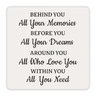 Return Policy Fast Delivery Trusted seller Desk Decorations, Wood Plaque, Motivational Gifts for Friends, BFF, Family, Children, ‘Behind You All Your Memories’, Favors for Birthday, Anniversary, etc., Graduation Gifts, Farewell Gifts. (001) Product Description -The Best Choice for Gifts: You can take this wood plaque as a gift to yourself, and also could gift to your family, friends, colleagues, etc. Our products is perfect to be the best gifts for birthday, valentine’s day, thanksgiving, Christmas, Anniversary, etc. -Delicate Decoration: The wood plaque could be seasonal decoration, daily home decor. This delicate plaque is an ideal decoration for your home, dorm, bedroom, bathroom, living room, classroom, office, Café, etc. -Plaque Size: The wood plaque measures 5.1 x 5.1 inches and 0.23 inches deep. Each pack have 1 set of a wooden plaque and a iron stand. It is easily to be assembled. -Widely Use: It can be placed on desks, bedside table, dining table, shelves, fireplace mantelshelf, windowsill, etc. -Exquisite Design: We design the brilliant product through combining the meaning of the content with the length of the sentence and the unique fonts. Our product carry deep meanings and sentimental value, which could bring cherished memory between you and the recipient. Shipping Returns Payment Shipping Shipping is FREE to all addresses other than APO/PO boxes in the lower 48 states. All our stock ships from US-based warehouses. Shipped via USPS or UPS (depending on location and package weight) Unless stated otherwise, all orders will ship within 24-72 hours of your payment being processed. Check our feedback to see the great reviews of FAST shipping we offer. Returns Seller does not accept returns Payment We currently accept payment via eBay managed payments only. Once payment is cleared, we will dispatch your shipment within 1-3 business days. Please refer to the "Shipping" tab for more information regarding shipping speed to your destination.