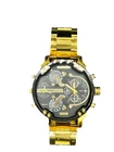 This Diesel Mr. Daddy 2.0 Chronograph wristwatch is a perfect addition to your collection. With a striking gold dial and bracelet, this watch exudes luxury and elegance. The round watch face features stick indexes and a date and day indicator, making it both practical and stylish. Crafted with high-quality stainless steel, this watch is water-resistant and has a quartz movement powered by battery. The case has a gloss finish and measures 57mm in size with a 14mm thickness. The bracelet is also made of stainless steel and has a width of 28mm. This watch is suitable for adult men and is perfect for a variety of occasions, including casual, classic, luxury, dress/formal, and sports.