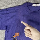 Theme:90sSeller Notes:“some streaks throughout shirt as shown in photos.. looks good in my opinion but is considered a flaw”Department:MenCharacter Family:DisneyBrand:DisneySize:XLSize Type:RegularType:T-ShirtColor:Purple