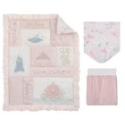 The perfect collection for your pretty princess! This Princess Enchanting Dreams 3 Piece Crib Bedding Set includes a 34" x 43" comforter, a 28" x 52" fitted crib sheet and a 27" x 51" crib skirt. The comforter is a sweet baby pink adorned with mixed pieced fabrics like faux velvet and sparkle jacquard. Embroidered gold and silver stars decorate the front along with Cinderella's glass slipper, pumpkin carriage, castle, and crown appliques! A sparkly metallic organza ruffle decorates the trim. Reverses to a white ground with tossed iconic symbols from Cinderella. Back of comforter coordinates with the fitted sheet print. The crib sheet features elastic all around the edges for a safe and snug fit. Made from 100% cotton. The crib skirt is a solid baby pink and features the sparkly metallic Free Shipping Over $49.99* Details Disney Princess Enchanting Dreams 3 Piece Nursery Crib Bedding Set Product Description: The perfect collection for your pretty princess! This Princess Enchanting Dreams 3 Piece Crib Bedding Set includes a 34" x 43" comforter, a 28" x 52" fitted crib sheet and a 27" x 51" crib skirt. The comforter is a sweet baby pink adorned with mixed pieced fabrics like faux velvet and sparkle jacquard. Embroidered gold and silver stars decorate the front along with Cinderella's glass slipper, pumpkin carriage, castle, and crown appliques! A sparkly metallic organza ruffle decorates the trim. Reverses to a white ground with tossed iconic symbols from Cinderella. Back of comforter coordinates with the fitted sheet print. The crib sheet features elastic all around the edges for a safe and snug fit. Made from 100% cotton. The crib skirt is a solid baby pink and features the sparkly metallic organza on the long front panel. This collection is sure to enchant your little royal. Machine washable for easy care!