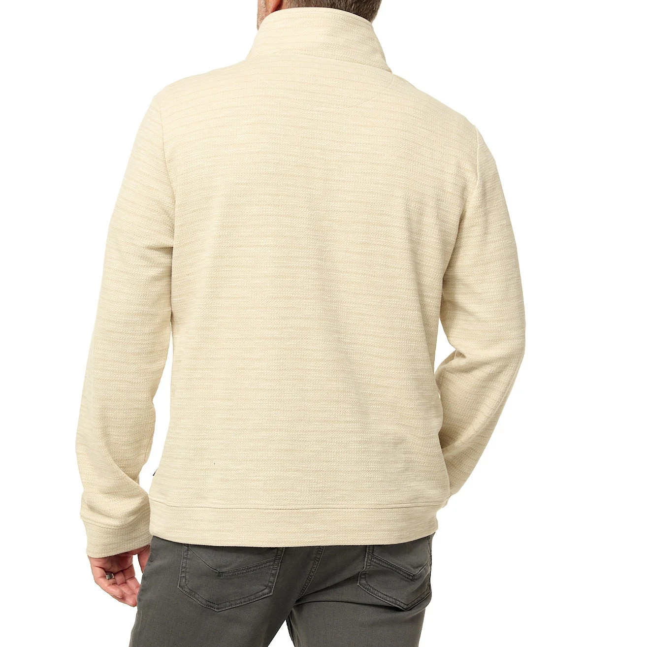 Dockers Men's Quarter Zip Regular Fit Textured Fabric Pullover Size: Large Color: Beige Content: 66% Cotton / 34% Recycled Polyester