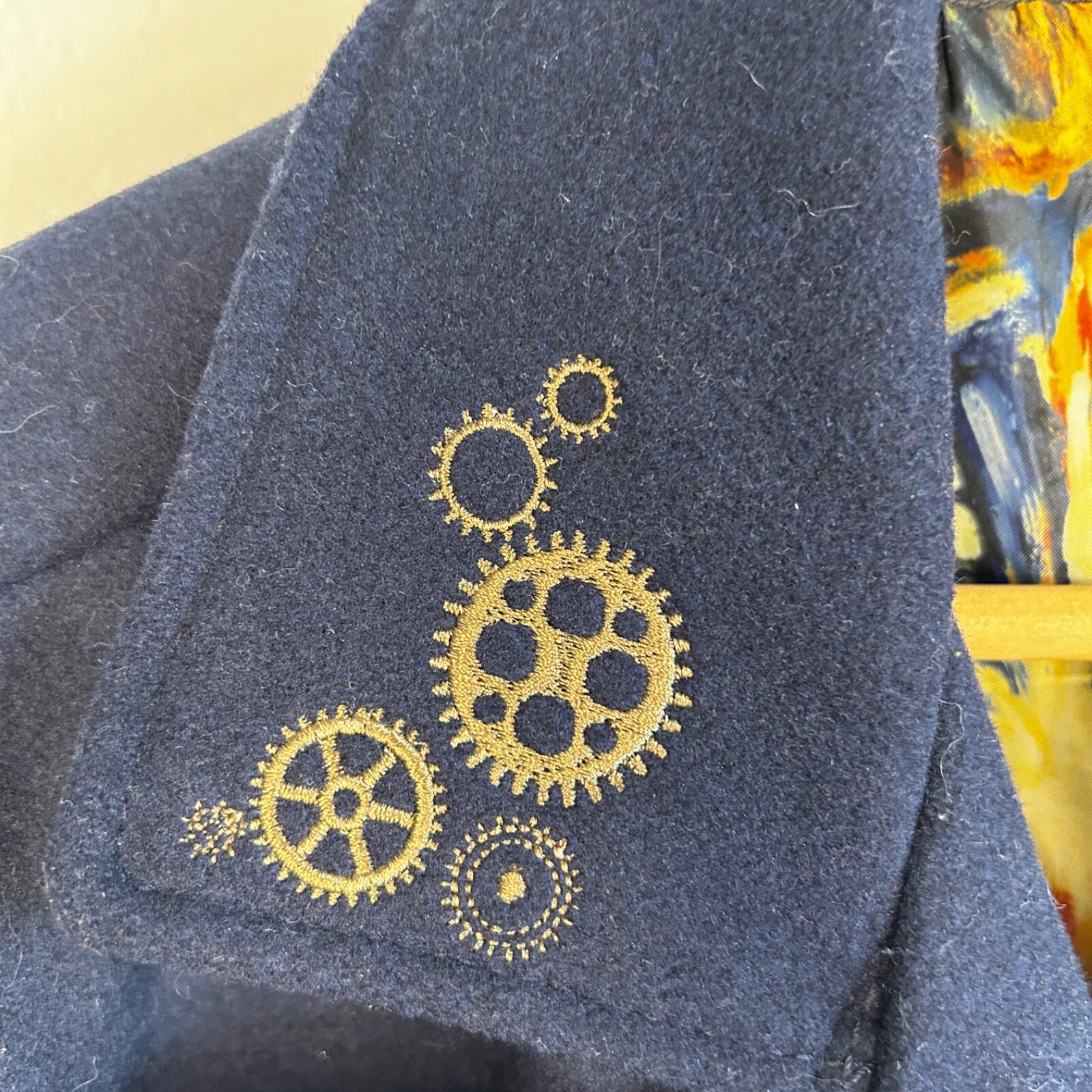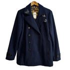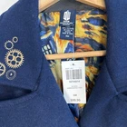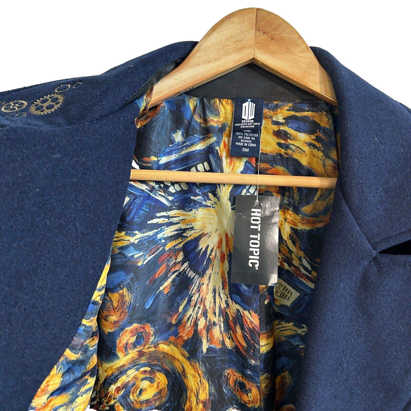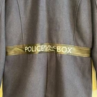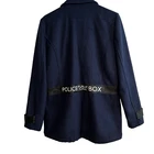 Step into timeless style with this Doctor Who Embroidered TARDIS Peacoat , a must-have for fans of the iconic sci-fi series! Features: Stylish Design: Classic peacoat silhouette tailored for men, perfect for everyday wear or cosplay. TARDIS Embroidery: Intricate and detailed embroidery of the TARDIS on the back, showcasing your love for the Doctor Who universe. Quality Fabric: Made with a durable and warm fabric blend, ideal for keeping you cozy in cooler weather. Custom Details: Subtle nods to the series, including unique buttons and accents that make this coat a standout. Versatile Wear: Perfect for conventions, casual outings, or adding a geek-chic vibe to your wardrobe. Condition: NEW with Tags. Size: Small Color: Classic black with blue and silver TARDIS embroidery. Self: 90% polyester; 10% wool Lining: 100% polyester Dry clean only Imported Listed in men's sizes Don’t miss the chance to own this stylish and practical coat that’s sure to turn heads, whether you're exploring the universe or just heading out for coffee!