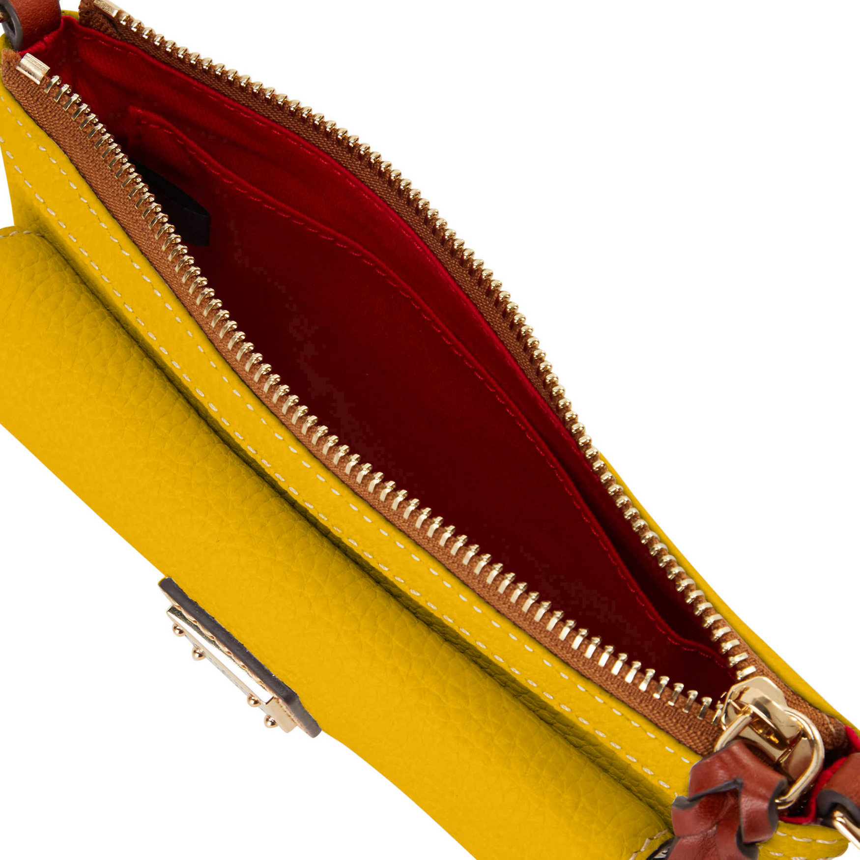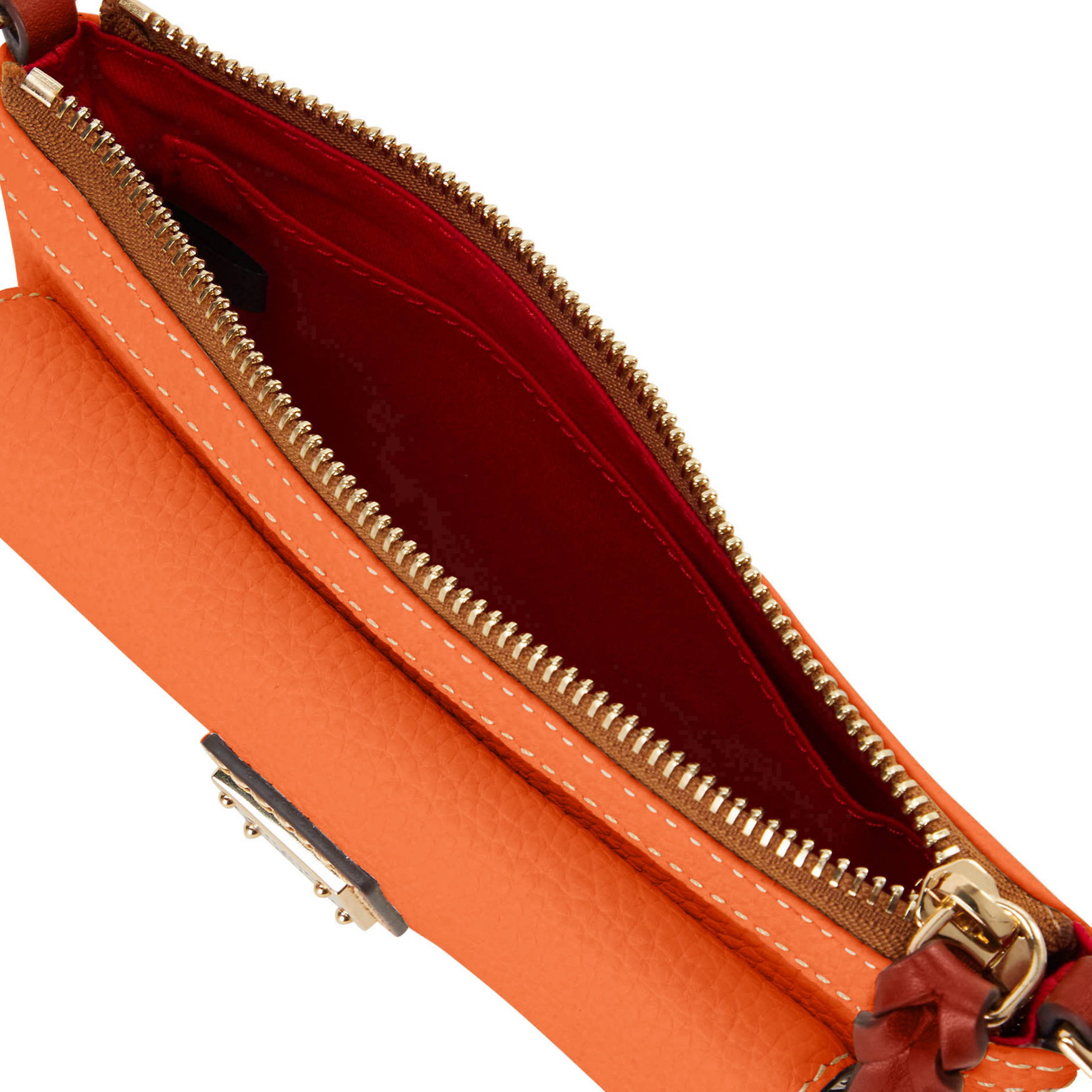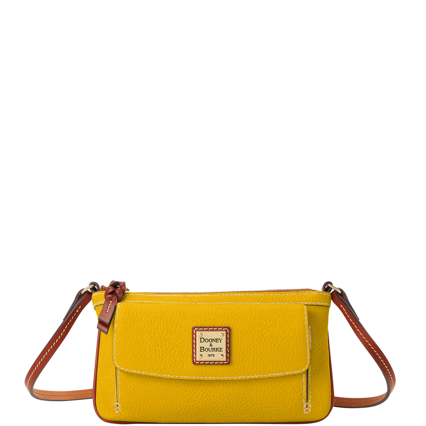 Pebble Grain Gigi Crossbody. One outside pocket. One inside pocket. Adjustable shoulder strap. Lined. Zipper Closure. Strap drop length 23". On The Go Add a vintage-chic touch to your everyday with this petite crossbody bag, crafted from textured leather with a natural grain that hides signs of wear.