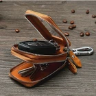 Genuine Leather Car Keychain Holder with Double Zipper Wallet Purse