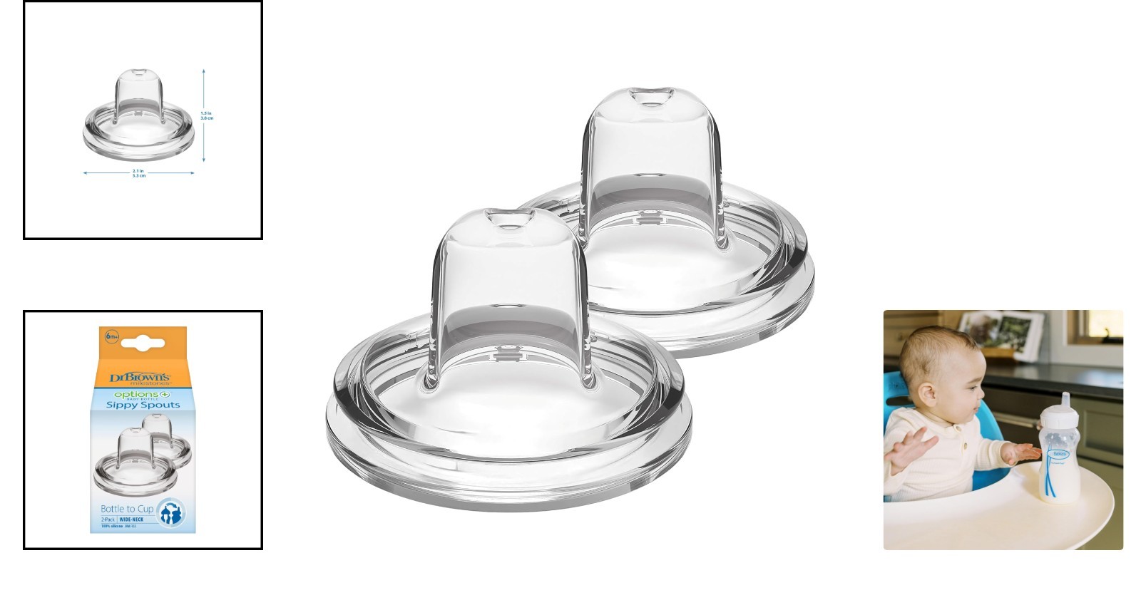 Dr. Brown's Options+ Silicone Sippy Spout 2-Pack for Easy Toddler Transition ‹ › ‹ › ‹ › ‹ › ‹ › ‹ › ‹ › ‹ › ‹ › ‹ › ‹ › ‹ › ‹ › ‹ › Options+ Silicone Sippy Spout 2-Pack Transform your little one’s drinking experience with the elegant simplicity of the Options+ Silicone Sippy Spout. This essential accessory is designed to make the transition from bottle to sippy cup seamless and stress-free. Features: Transition with Ease: Simplify transitions from bottle to sippy by swapping the existing bottle nipple for the innovative sippy spout. Gradual Learning: The soft spout is designed for easy sipping, allowing toddlers to gradually learn how to drink from a cup. One-Piece Silicone Design: Enjoy the convenience of an easy-to-assemble, one-piece silicone spout that merely takes seconds to fit onto your bottle. Dishwasher Safe: Cleaning is a breeze. The sippy spout is safe for the top rack of the dishwasher and can be sterilized for utmost hygiene. BPA Free: Made from 100% safe silicone, providing peace of mind for you and your child. Specifications: Includes 2 sippy spouts. Compatible with Wide-Neck 5oz/150mL & 9oz/270mL Options+ Bottles. Recommended for toddlers aged 6 and older. Why Choose Options+ Sippy Spout? Turn your Options+ Bottle into a sippy bottle with ease, capitalizing on the familiarity your baby has with their bottle. The patented smart design adapts to your child’s drinking needs, ensuring a smoother transition to independence without compromising on quality. Made from soft, safe silicone that’s specifically crafted for tiny hands and mouths, it’s the ideal choice for discerning parents. Equip your little one for their next milestone – order your Options+ Silicone Sippy Spout 2-Pack today and watch them sip into success! Shipping Free & Fast Shipping - We offer free shipping to most of the USA with a normal delivery time of 3-7 days. However, due to the current situation, additional delivery time (up to 3 weeks) may be required for some items. Alternative Carriers - We may use alternative carriers (e.g. USPS, FedEx, UPS, etc.) to ensure your package arrives safely and on time. Due to the use of multiple carriers, we are unable to provide a tracking number automatically. Handling Time - Orders are processed and shipped within 1-2 business days of receiving cleared payment. Shipping Restrictions - Shipping to Alaska, Hawaii, Puerto Rico, Guam, and other US territories may incur shipping charges or delivery restrictions. Please contact us before ordering, or your order can be refunded/cancelled. State Restrictions - There may be restrictions based on your state of purchase. For example, certain items may not be shipped to California due to state regulations. Contact for Tracking Updates - If you require tracking updates or have any concerns about the delivery of your order, please feel free to contact us, and we will be happy to assist you. Return 30-Day Hassle-Free Returns - We want you to be completely satisfied with your purchase. If you are not, you can return the item within 30 days of receiving it for a full refund or exchange. Easy Return Process - To start a return, simply contact us and we will provide you with a prepaid return shipping label and detailed instructions. Restocking Fee - There are no restocking fees for returns. However, the buyer is responsible for return shipping costs if the return is not due to a seller's error. Refund Processing Time - Refunds will be processed within 5 business days of receiving the returned item in its condition. Payment We accept all major credit cards, PayPal, and Apple Pay for your convenience. Your payment information is secure and encrypted to ensure a safe and seamless transaction. Please complete your payment within 3 days of purchase to avoid any delays in shipping. Feedback Your feedback is extremely important to us. We strive to provide the best products and customer service possible. If you are satisfied with your purchase, please take a moment to leave us a positive review. If you have any concerns or issues with your order, please contact us before leaving negative feedback. We are committed to resolving any problems and ensuring your satisfaction. Contact Us If you have any questions or concerns, please feel free to out to our customer support team. You can contact us through the eBay messaging system. We are available Monday to Friday, 9:00 am to 5:00 pm EST, and we will do our best to respond to your inquiry within 24 hours. Buy it now and enjoy a pleasant shopping experience! MPN: Baby_Bottle_Sippy_Spout Model: Baby Bottle Sippy Spout Unit Quantity: 2.0 count Nipple Type: Soft Nipple,Vented Bottle Type: Wide Neck Bottle Features: Dishwasher Safe,BPA Free,Sterilizer Safe Nipple Flow: Slow Flow Bottle Material: Silicone Color: Transitions Sippy Spout Capacity: 150ml / 5oz. Nipple Material: Silicone Type: Mixed Bottle Set Suitable From: 6