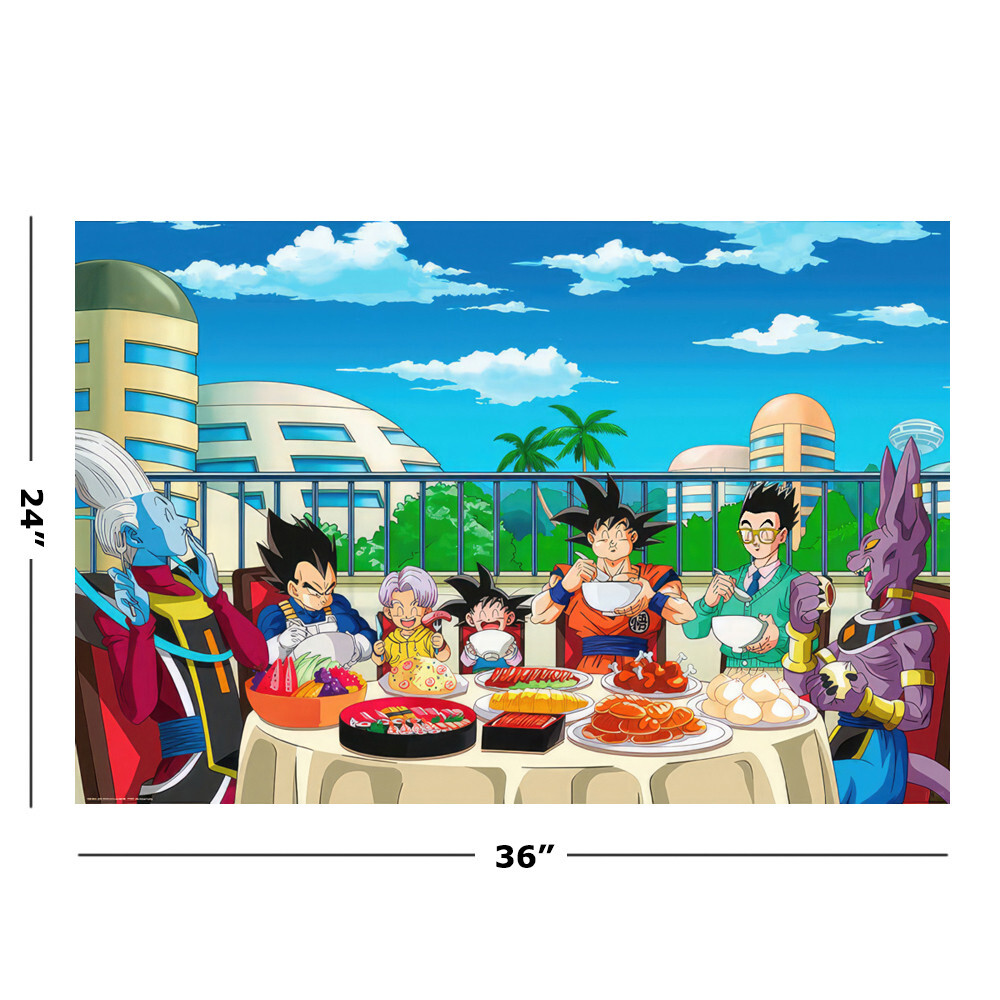 This vibrant Dragon Ball Super poster is a must-have for any fan! The artwork of Goku and his friends sharing a meal is full of energy and color, instantly brightening any room. The high-quality print on thick paper looks fantastic, and the large 36x24 size makes it a standout piece. Perfect for anime lovers—great value and fast shipping from a trusted seller!