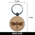 Dragonfly Solid Engraved Wood Round Keychain Tag Charm