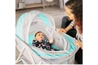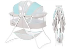Introducing the Dream On Me Karley Bassinet in Blue & Grey, a lightweight portable baby bassinet perfect for your little one's sleep space. This bassinet features an adjustable canopy, mattresses, a rocking stand, wheels, and a storage basket for added convenience. It also comes with a sound/music feature and is made with polyester fabric and finish. The Karley Bassinet is designed with a rectangular shape and measures 33x19.5x37 inches. It has a maximum weight recommendation of 25.0 and is suitable for both boys and girls. The bassinet is easy to assemble and disassemble, making it a perfect option for parents who want to take their baby on the go.