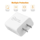 Description: 【20W Dual Port Fast Charging】Equipped with USB-C (PD Power Delivery) and USB-A (QC3.0 Quick Charge) dual port with totally 20W output, you can charge two devices at the same time 【The USB-C Port】20Watt Type-C PD Power Delivery -The latest generation fast charging technology, Charge 2.5x faster than the 5W charger, you can charge for iPhone 12 from 0 to 50% in about 30 minutes ( Fast charging List: iPhone 12 / Pro / Max / Mini, iPhone 11 / XS / X / XR / 8 / 8 Plus ) 【The USB-A Port】 QC 3.0 Quick Charge - Max speed charge your QC3.0 Enable Devices, Including for Samsung Galaxy S20/S10/S9/S8/S7, Moto, LG More Android Phones, also can charge for iPhone, iPad in ordinary speed. 【Safe and Compact】 Built-in smart chip will prevent over-current, overcharging, overheating and high temperature to protect your device safety. The USB C Charger small and exquisite, you can take everywhere. Name: QC 3.0 +PD 20 W Type-C Charger Material: Fire-Resistant PC Model: US PLUG Color: White Input: AC100-240V , 50-60Hz,0.5A QC 3.0: 5V/4A; 9V/2 .2 A; 12V/1. 7 A Package Included: 1/2/3/5/10/20/50/100/200/500/1000 Pack Wall Plug