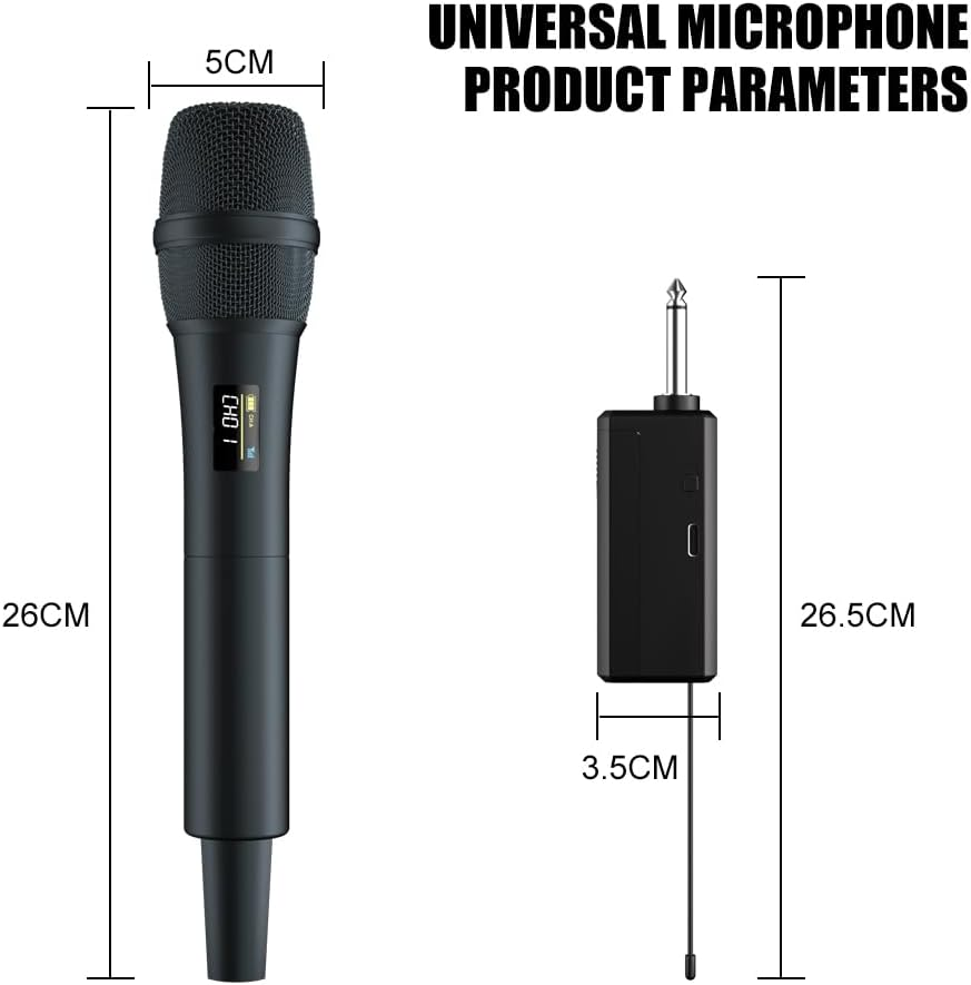 Dual UHF Wireless Microphone System 2 Handheld Mics 160Ft Range Noise Cancelling 🚀 Dual UHF Band & 160ft Stable Signal » Utilizes 2 independent frequency channels to avoid interference, ensuring crystal-clear audio transmission within 160ft—ideal for stages, large venues, and crowded events. 🔋 Rechargeable & Long-Lasting » Uses a rechargeable battery that provides excellent battery life and can withstand long periods of use. And the battery is faster to recharge faster and allow the user to quickly charge it in a short period of time. 🎤 Professional Noise Cancellation » Built-in DSP chip eliminates background noise, wind interference, and howling. Delivers studio-quality sound for vocals, presentations, and recordings. ✅ Plug-and-Play & Dual-Mic Sync » Auto-pairing with receiver (No setup!). Control both mics via 1 receiver—adjust volume individually or simultaneously. Ideal for duets/group sessions. 🌍 5+scene all-in-one machine » Specially designed for DJs, live singers, conferences, classrooms, and content creators. Good compatibility, compatible with multiple audio devices and systems, convenient for users to integrate and expand the system. It can be used in conjunction with professional audio equipment or ordinary multimedia devices to provide audio signals and playback, including 2 UHF microphones, 6.35mm receiver, 2 anti slip rings, 3.5mm adapter, USB-C charging cable, instruction manual. Product Description Item model number AX835 wireless microphone Power Source Battery Powered Country of Origin China Material Metal Number of Channels 1 Microphone Form Factor Handheld Number of Batteries 2 Lithium Ion batteries required. (included) Package Dimensions 12.01 x 7.48 x 2.4 inches Included Components function(f) {var _np=(window.P._namespace("DetailPageProductOverviewTemplatesJava"));if(_np.guardFatal){_np.guardFatal(f)(_np);}else{f(_np);}}(function(P) { P.when('A').execute(function(A){ A.on('a:truncate:po-attribute-truncate-7:updated', function(data) { var isTruncated = !data.truncateInstance.getIfTextFits(); var seeMoreElement = document.getElementById('po-attribute-see-more-id-7'); if(seeMoreElement) { seeMoreElement.style.display = isTruncated ? '' : 'none'; } }) }); })); 2 Handheld Mics, 6.35mm Receiver, 2 Anti Slip Rings, 3.5mm Adapter, USB-C Charging Cable, Instruction Manual See more Hardware Platform DVD Player, Audio Mixer, Karaoke Machine Material Type Metal Connector Type 6.35 mm Jack, 3.5 mm Jack Item Weight 1.96 pounds Connectivity Technology UHF Battery type Lithium Ion Special Feature Noise Reduction Color Metallic Black Compatible Devices Audio Mixer, PA System, Home Theater, Amplifier, Karaoke Machine Polar Pattern Unidirectional Batteries 2 Lithium Ion batteries required. (included) Recommended Uses For Product Singing, hosting, busking, perform, Karaoke Color Name Metallic Black Complimentary Shipping and Easy Returns Need to return something? Enjoy our 30-day hassle-free return policy! Take advantage of free shipping across all 48 contiguous states! Your order will be dispatched within 1-2 business days once payment is confirmed. Your Opinion Matters! Your happiness is our main goal! We welcome your feedback! If you encounter any problems, reach out to us right away, and we’ll be here to help. Explore the Extraordinary! Our collection showcases fascinating products that are sure to capture your attention. What surprises await you? Delve in and discover unique items that enrich your daily life. Don't miss the amazing things we have in store for you!