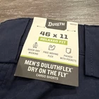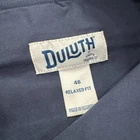 Personalize: No Pattern: Solid Handmade: No Style: Cargo Vintage: No Rise: Mid (10-12 in) Fabric Wash: Medium Inseam: 11 in Department: Men Color: Blue Brand: Duluth Waist Size: 46 in Closure: Button Occasion: Casual, Travel, Workwear Front Type: Flat Front Accents: Button, Logo, Zipper Season: Fall, Spring, Summer, Winter Pocket Type: 5-Pocket Design Features: Pockets Fit: Regular Material: Cotton Fabric Type: Canvas Size Type: Regular Size: 46 Garment Care: Machine Washable