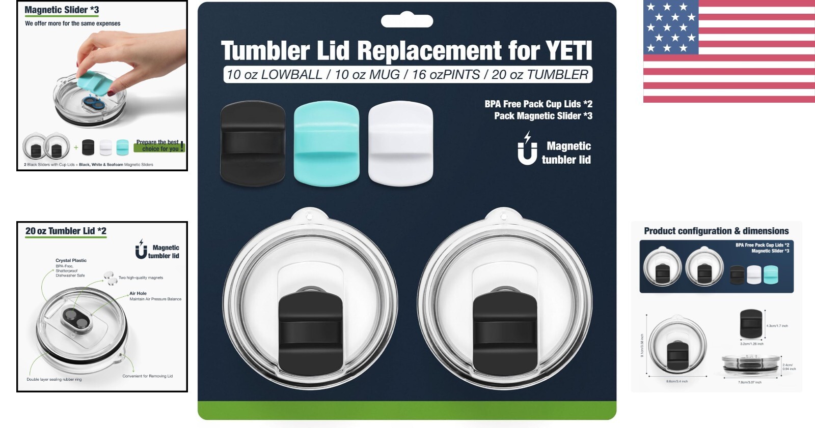 Durable 20 oz Magnetic Lid Set - BPA-Free Slider for YETI Tumbler Owners ‹ › ‹ › ‹ › ‹ › ‹ › ‹ › ‹ › ‹ › ‹ › ‹ › Durable 20 oz Magnetic Lid Set -BPA-Free Slider for YETI Tumbler Owners Specifications: Perfectly compatible with YETI 10 oz Lowball, 10/24 oz Mug, 16 oz Pint and 16/20 oz Tumbler. Available in three cup lid sizes; please ensure to select the correct fit. Features: Made of food-grade SK material, ensuring safety for direct contact. Superior impact resistance and shatter resistance compared to traditional AS material. Enhanced transparency for a sleek look. Robust dual-seal design with two powerful magnets for secure opening and closing. Comes with two 20 oz tumbler lids with black sliders, plus interchangeable magnetic sliders in black, white, and seafoam for customization. Benefits: Temperature preservation, allowing you to enjoy beverages at their best. Stylish customization options to reflect your personal taste. Safe and durable materials for long-lasting use. Assured service with 24-hour assistance for any issues. Why Choose Our Magnetic Lid Set? Elevate your drinking experience with our Durable 20 oz Magnetic Lid Set, expertly crafted for the discerning YETI tumbler owner. Made from , BPA-free SK material, this lid not only ensures safety but also gives you the confidence of enhanced durability. With a dual-seal design and powerful magnets, it guarantees a secure fit that keeps your favorite beverages at the perfect temperature. Plus, with an array of stylish slider options, you can personalize your tumbler to match your unique aesthetic. Don’t settle for anything less than the best for your YETI tumbler—choose our Magnetic Lid Set today and experience the difference! Shipping Free & Fast Shipping - We offer free shipping to most of the USA with a normal delivery time of 3-7 days. However, due to the current situation, additional delivery time (up to 3 weeks) may be required for some items. Alternative Carriers - We may use alternative carriers (e.g. USPS, FedEx, UPS, etc.) to ensure your package arrives safely and on time. Due to the use of multiple carriers, we are unable to provide a tracking number automatically. Handling Time - Orders are processed and shipped within 1-2 business days of receiving cleared payment. Shipping Restrictions - Shipping to Alaska, Hawaii, Puerto Rico, Guam, and other US territories may incur shipping charges or delivery restrictions. Please contact us before ordering, or your order can be refunded/cancelled. State Restrictions - There may be restrictions based on your state of purchase. For example, certain items may not be shipped to California due to state regulations. Contact for Tracking Updates - If you require tracking updates or have any concerns about the delivery of your order, please feel free to contact us, and we will be happy to assist you. Return 30-Day Hassle-Free Returns - We want you to be completely satisfied with your purchase. If you are not, you can return the item within 30 days of receiving it for a full refund or exchange. Easy Return Process - To start a return, simply contact us and we will provide you with a prepaid return shipping label and detailed instructions. Restocking Fee - There are no restocking fees for returns. However, the buyer is responsible for return shipping costs if the return is not due to a seller's error. Refund Processing Time - Refunds will be processed within 5 business days of receiving the returned item in its condition. Payment We accept all major credit cards, PayPal, and Apple Pay for your convenience. Your payment information is secure and encrypted to ensure a safe and seamless transaction. Please complete your payment within 3 days of purchase to avoid any delays in shipping. Feedback Your feedback is extremely important to us. We strive to provide the best products and customer service possible. If you are satisfied with your purchase, please take a moment to leave us a positive review. If you have any concerns or issues with your order, please contact us before leaving negative feedback. We are committed to resolving any problems and ensuring your satisfaction. Contact Us If you have any questions or concerns, please feel free to out to our customer support team. You can contact us through the eBay messaging system. We are available Monday to Friday, 9:00 am to 5:00 pm EST, and we will do our best to respond to your inquiry within 24 hours. Buy it now and enjoy a pleasant shopping experience! Unit Quantity: 1.0 Material: BPA-Free Plastic,SK Material,Food-Grade Plastic Theme: Tumbler Lids Replacement Features: Microwave Safe,With Slider,Magnetic,Dishwasher Safe,Impact Resistant,Shatter Resistant,Dual-Seal Design Department: Adults,Unisex Type: Container Lid Color: Black Beverage Type: Hot or Cold Capacity: 20 oz Lid Type: Magnetic Item Height: 0.9 Inches Keeps Cold For: Not Specified Keeps Hot For: Not Specified Care Instructions: Dishwasher Safe Number of Items in Set: Two-Piece Item Weight: 0.2 kilograms Unit Type: Unit