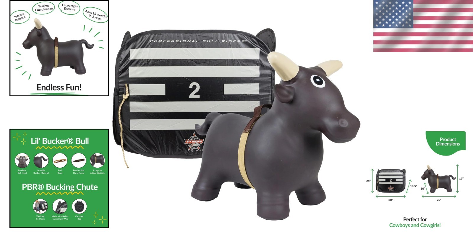 Durable Inflatable Lil’ Bucker Bull with PBR Chute - Safe Play for Ages 3+ ‹ › ‹ › ‹ › ‹ › ‹ › ‹ › ‹ › ‹ › ‹ › ‹ › ‹ › Durable Inflatable Lil’ Bucker Bull with PBR Chute Safe Play for Ages 3+ RODEO BOUNCY BULL FOR ULTIMATE FUN Perfect gift for little cowboys and cowgirls, ages 3 years and older. Encourages play, bounce, and bucking while developing essential balance and coordination. REALISTIC BULL HEAD FOR AUTHENTIC RODEO EXPERIENCE Features a realistic bull head design for immersive play. Includes a bull rope for added fun and authenticity. Designed with four legs for stability and support for younger children. IMAGINATIVE FUN WHILE LEARNING COORDINATION & BALANCE Toddlers learn essential skills while having a blast! Perfectly pairs with the PBR Bucking Chute for extended rodeo fun. SAFE & DURABLE FOR AGES 18 MONTHS TO 3+ YEARS Crafted from heavy-duty rubber to withstand indoor and outdoor play. Includes a pop-up PBR bull riding chute, bull rope, dual-action hand pump, and simple assembly instructions. COLLECT THE FULL SET OF RIDING & RODEO TOYS Complete your child's rodeo experience with ’ full line of bouncy riding toys and chutes. Encourage a love of the Wild West while promoting healthy exercise and skill development. Playtime just got better! Our product line continually expands to include farm animals, rodeo figurines, vehicles, trailers, and play sets. Dive into adventure and let your child’s imagination run wild! Shipping Free & Fast Shipping - We offer free shipping to most of the USA with a normal delivery time of 3-10 businessdays. However, due to various situations, additional delivery time (up to 3 weeks) may be required for some items. Alternative Carriers - We may use alternative carriers (e.g. USPS, FedEx, UPS, etc.) to ensure your package arrives safely and on time. Due to the use of multiple carriers, we are unable to provide a tracking number automatically. Handling Time - Orders are processed and shipped within 1-5 business days of receiving cleared payment. Shipping Restrictions - Shipping to Alaska, Hawaii, Puerto Rico, Guam, and other US territories may incur shipping charges or delivery restrictions. Please contact us before ordering, or your order can be refunded/cancelled. State Restrictions - There may be restrictions based on your state of purchase. For example, certain items may not be shipped to California due to state regulations. Contact for Tracking Updates - If you require tracking updates or have any concerns about the delivery of your order, please feel free to contact us, and we will be happy to assist you. Return Please see our ebay return policy. We do not accept return on most products. This is to avoid customers mis-using ebay returns. All sales are final. Please be sure to check the return policy listed at the top of the listing. In rare cases, we may accept returns, if the buyer pays both ways shipping and 20% restocking fee. If you are un-sure of return policy of a particular item, please ask before buying. Payment We accept all major credit cards, PayPal, and Apple Pay for your convenience. Your payment information is secure and encrypted to ensure a safe and seamless transaction. Please complete your payment within 3 days of purchase to avoid any delays in shipping. Feedback Your feedback is extremely important to us. We strive to provide the best products and customer service possible. If you are satisfied with your purchase, please take a moment to leave us a positive review. If you have any concerns or issues with your order, please contact us before leaving negative feedback. We are committed to resolving any problems and ensuring your satisfaction. Contact Us If you have any questions or concerns, please feel free to reach out to our customer support team. You can contact us through the eBay messaging system. We are available Monday to Friday, 9:00 am to 5:00 pm EST, and we will do our best to respond to your inquiry within 24 hours. Buy it now and enjoy a pleasant shopping experience! UPC: Not Set MPN: Not Set Recommended Age Range: 18 Months to 3+ Years Model: Not Set Skills: Chewing,Creativity,Hand-Eye Coordination,Language,Memory,Motor Skills,Problem-Solving,Sequencing,Balance,Coordination Brand: Unbranded Type: Activity Toy Age Level: 18-24 Months Theme: Not Set Color: Multicolor Gender: Unisex Character Family: Not Set