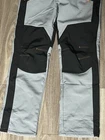 “Durable Two-Tone Work Pants with Reinforced Knees and Orange Accent Zippers”