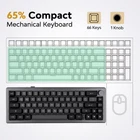 【Gasket-Mounted Mechanical Keyboard】It is well acknowledged by the community that a gasket-mounted keyboard has a cleaner sound profile compared to other mounts, such as top mount, and also gives a softer typing experience, which helps avoid hand fatigue for those who type for long periods. Given the benefits of sound and feel, newly launched EK68 gaming keyboard ultimately adopts this favored structure to provide a flexible, softer, and quieter experience. 【Three Modes of Connectivity: Bluetooth 5.0&2.4GHz&Type-C Cable】Equipped with a 3000mAh large capacity battery, this bluetooth keyboard supports wireless and wired connections. With its wireless connectivity, either Bluetooth (up to 5.0) or 2.4GHz can be chosen, you can enjoy a clutter-free setup and unrestricted movement, allowing you to focus on your gameplay without any distractions. The keyboard utilizes advanced technology to ensure fast and accurate keystrokes, providing a seamless gaming experience. In the wired mode, a USB-C cable is included for fast and stable transmission. Seamless switching between every device is like a piece of cake. 【65% Compact Layout】The EK68 compact keyboard is ergonomically designed to provide comfort during long gaming sessions. Designed in a favored 65% layout to maximize the function while not wasting a minimum of space. Its compact size and lightweight construction make it easy to carry, while the durable keys are built to withstand intense gaming sessions without compromising performance. Housing 66 keys and one knob, EK68 will surely be beyond your expectation with the hot swappable socket and programmable software, and amazing RGB backlights. 【Hot Swappable Keyboard&Full N-Key Rollover】EK68 hot-swappable keyboard is equipped with a 3/5-pin hot-swap PCB, allowing users to easily change and customize their key switches without soldering. Mix and match different switches to achieve your ideal typing experience. It is compatible with most 3-pin and 5-pin mechanical switches, such as Cherry, Gateron, Otemu, Kailh, and other MX switches and its clones. Hot-swappable sockets not only extend the lifespan of key switches but also provide more possibilities for DIY lovers. Equipped with full N-Key rollover, this keyboard ensures accurate and precise input, even during intense gaming sessions or fast-paced typing. 【Double Shot PBT Keycaps&RGB Backlit】Despite the functionality, spares no effort to present its aesthetics, made of high-quality PBT material via the double shot technique. The PBT keycaps are durable, oil-resistant, and stay true to color even after long use. The EK68 features dynamic RGB lighting. With customizable backlighting effects, you can create a visually stunning setup that matches your style and mood. The vibrant colors add an extra element of immersion and excitement to your gaming sessions.