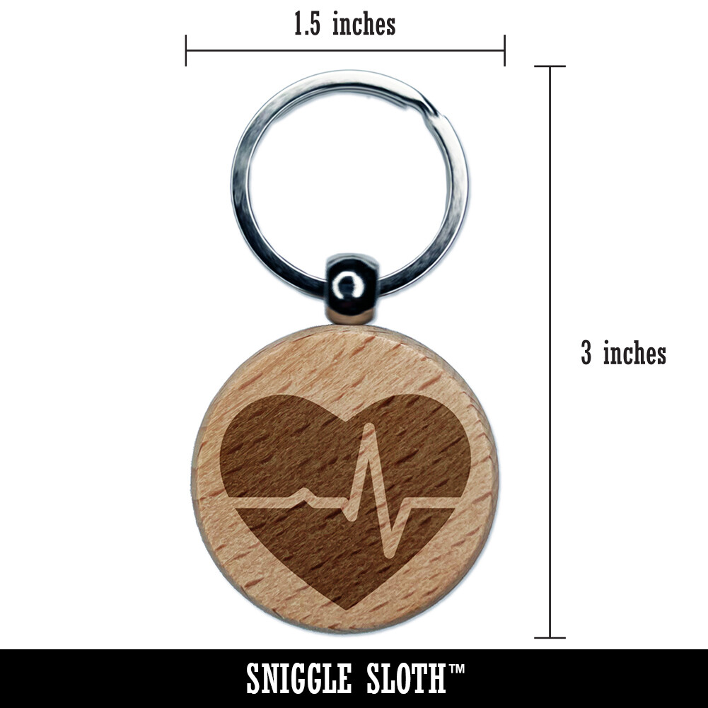EKG Pulse Heartbeat Engraved Wooden Round Keychain Charm