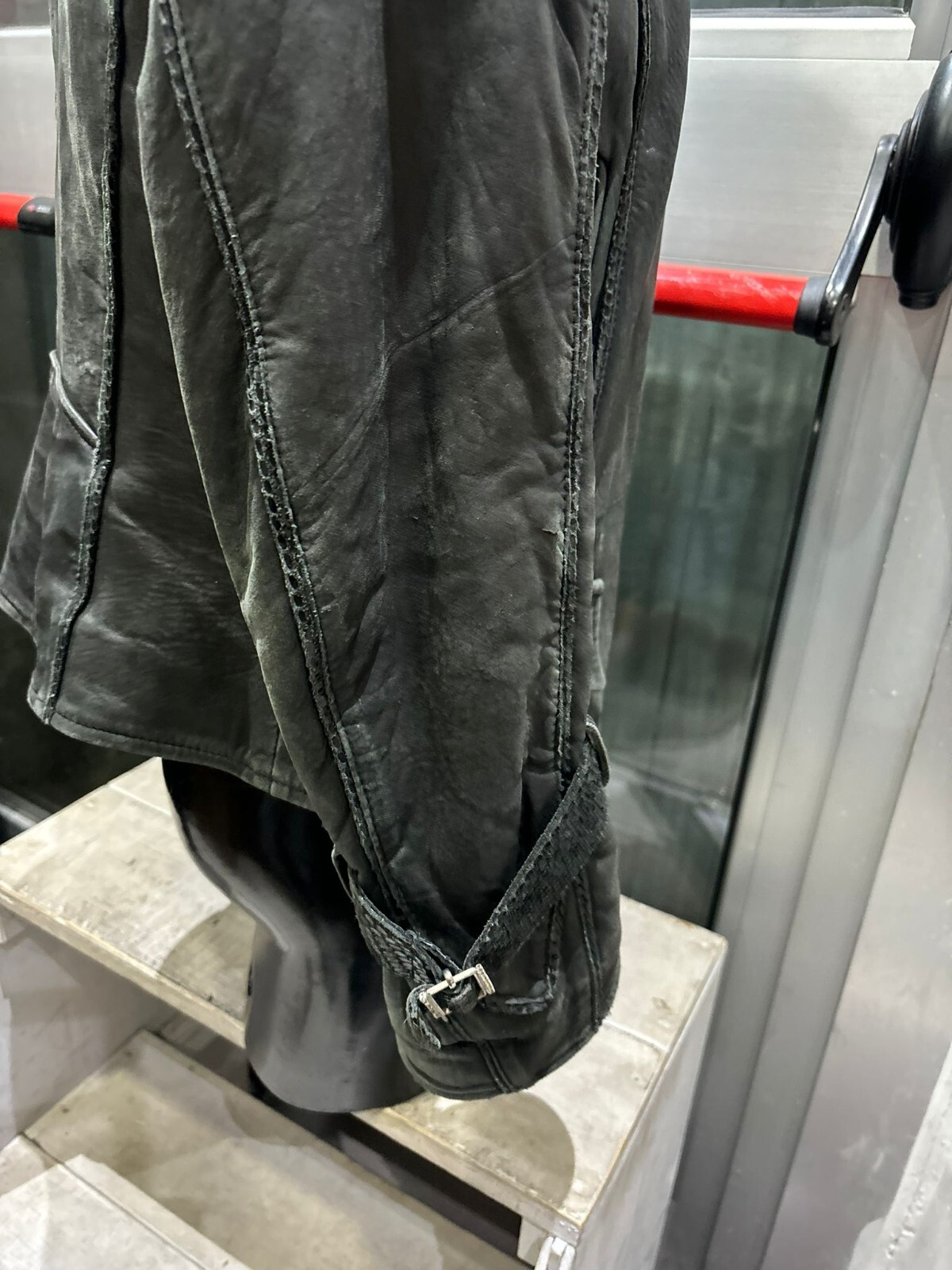 Department:womangtin13:Does not applyBrand:EnrycontStyle:JacketUPC:Does not applySize:42Type:JacketOuter Shell Material:LeatherSize Type:RegularVintage:YesColor:BlackClosure:Buttonmaterial texture:leather