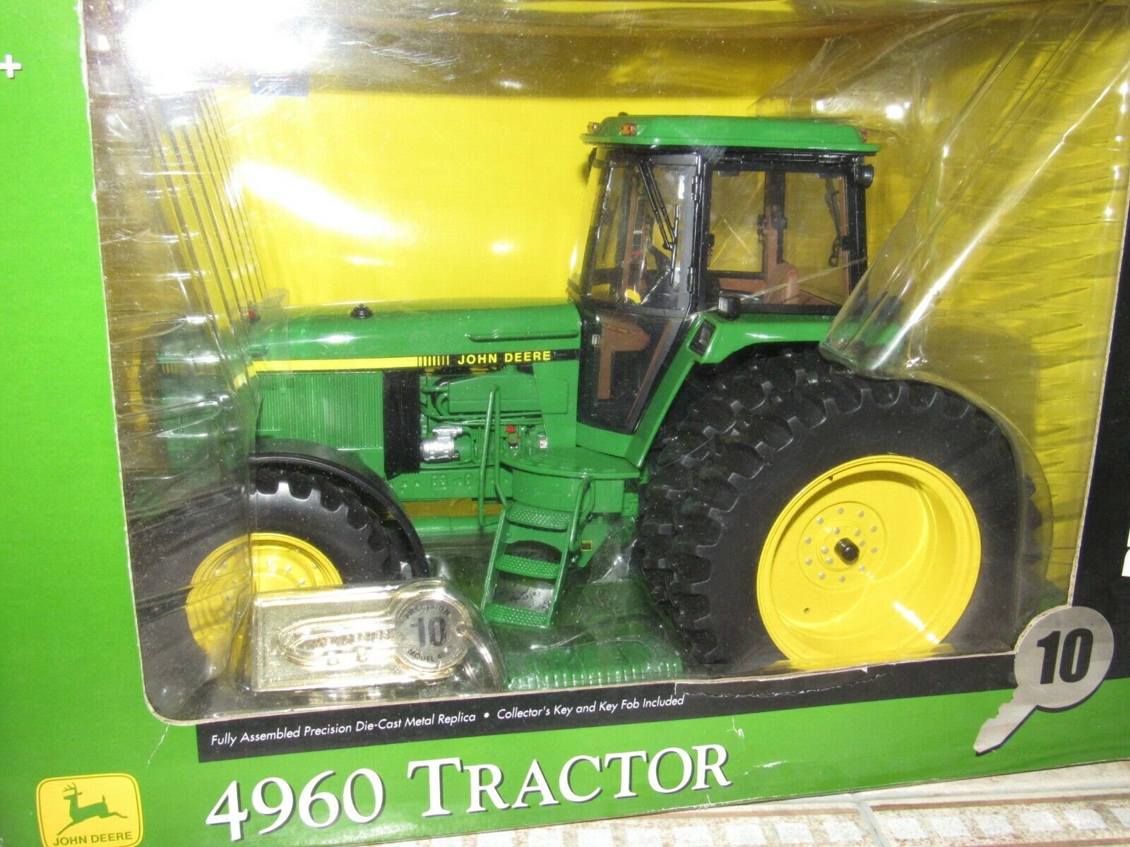 ERTL PRECISION KEY #10 JOHN DEERE 4960 TRACTOR - NIB - NEVER DISPLAYED !! HIGHLY COLLECTIBLE 1/16 SCALE, DIE-CAST ERTL PRECISION KEY #10 JOHN DEERE 4960 TRACTOR. FULLY ASSEMBLED PRECISION DIE-CAST METAL REPLICA. OPENING CAB DOORS AND CAB WINDOWS * MECHANICAL FRONT WHEEL DRIVE AXLE * SEPARATE FRONT WEIGHTS * DIE-CAST DUAL REAR WHEELS * 2-POINT HITCH THAT RAISES AND LOWERS COLLECTOR'S KEY AND KEY FOB INCLUDED. NEW IN THE BOX - GUARANTEED NEVER DISPLAYED - ALL FACTORY TIE DOWNS PRESENT. BOX IN VERY GOOD/EXCELLENT CONDITION WITH MINOR SHELF WEAR. BUY WITH CONFIDENCE - CHECK MY FEEDBACK! ONE YOU'LL BE PROUD TO OWN!!! 14 DAY MONEY BACK GUARANTEE. SHIPPED USPS PRIORITY MAIL, INSURED. NOTE: I SHIP IN 3 BUSINESS DAYS.