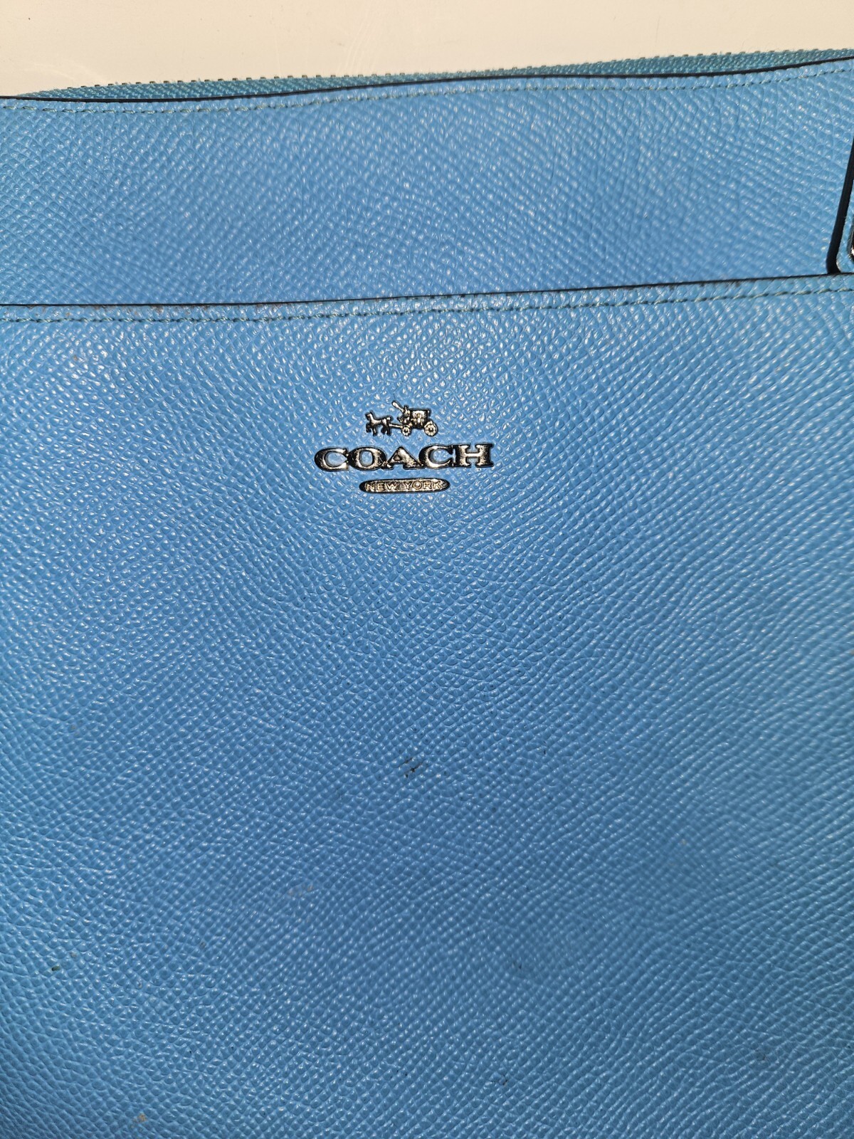 EUC COACH Crossbody NorthSouth Swingpack, Blue Pebble Leather w/ Silver Hardware. Condition is Pre-owned. Shipped with USPS Ground Advantage.