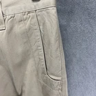 These Mountain Khakis pants are designed for outdoor activities like hiking. Made of durable cotton canvas in a brown color, they feature a solid pattern with a flat front and a mid-rise fit. The pants have a zip and button closure, with a waist size of 35 inches and inseam of 30 inches. They are machine washable and offer comfort and practicality with pockets, making them ideal for travel, casual wear, or workwear in various seasons.