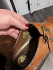The elastic on one buckle is cracking on one shoe. Slit in heel shown in pics. Step into comfort and style with these Earth Shoe Hickory clog mules. Crafted from high-quality leather, these shoes feature a buckle accent and a square toe design. The low wedge heel provides a comfortable fit, while the cushioned insole and leather lining ensure all-day wearability. These brown clogs have a retro hippie vibe that's perfect for any casual occasion. The standard shoe width and US size 7.5 make them a great addition to any wardrobe. Whether you're going for a bohemian look or simply want to add some comfort to your day, these Earth Shoe Hickory clogs are the perfect choice.