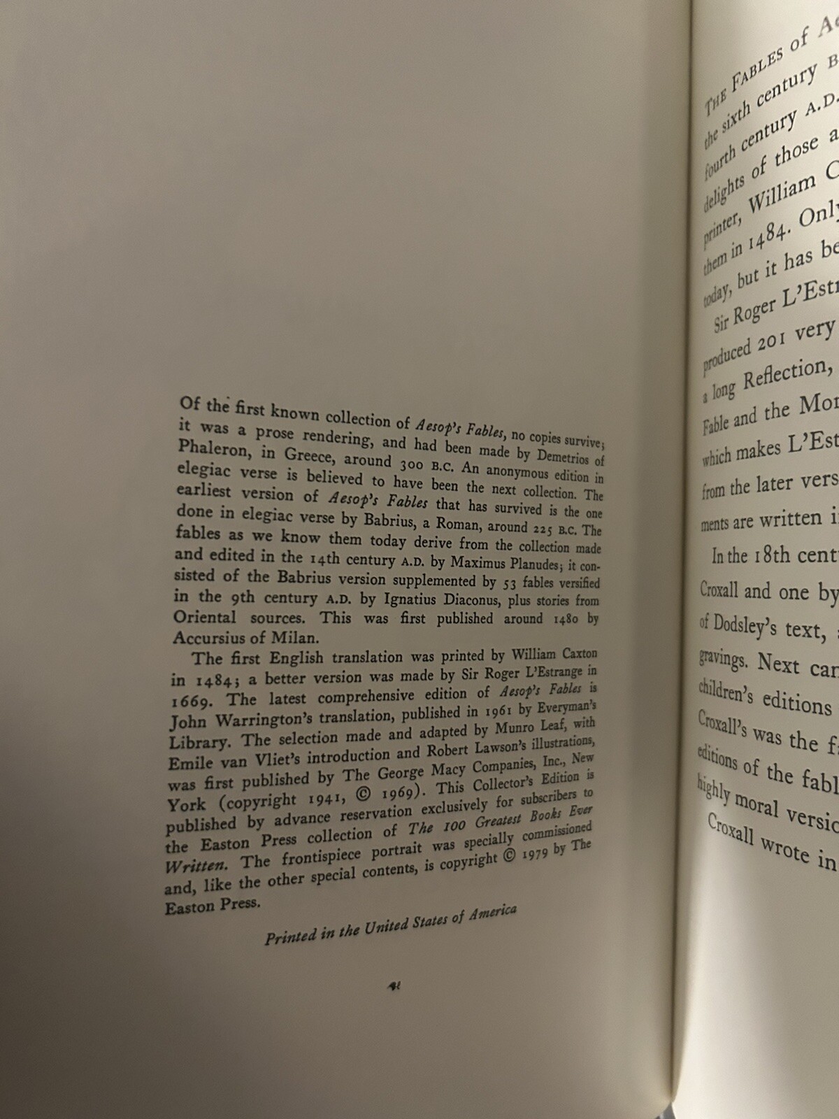 Easton Press: Aesop’s Fables, 1979 Collector's Edition. No bookplate.
