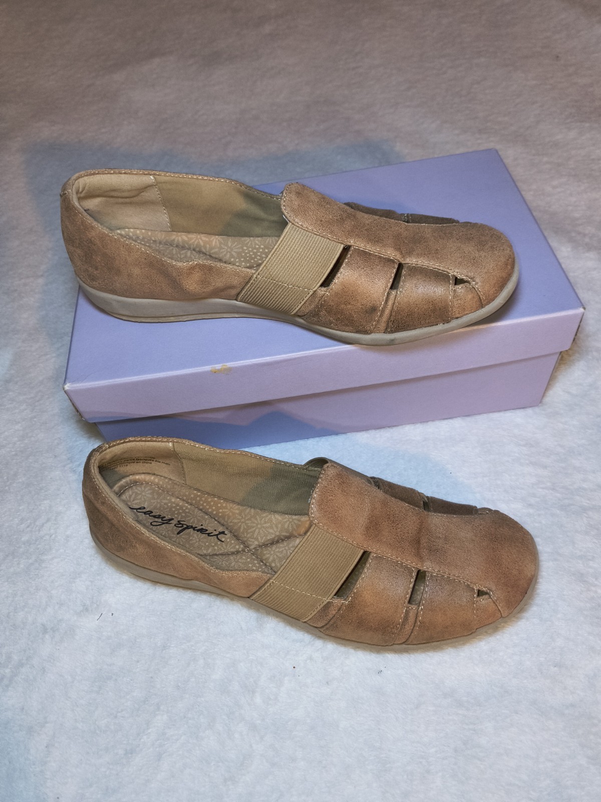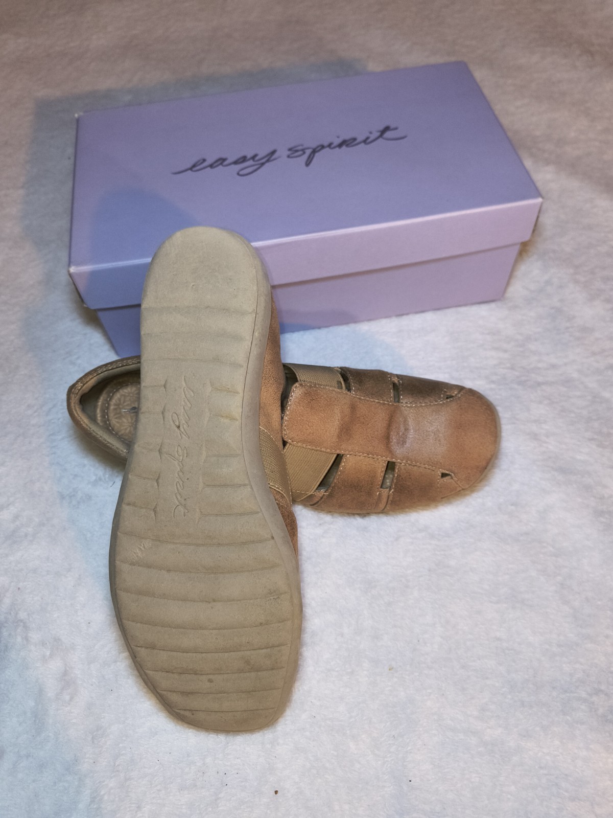 The Easy Spirit Brown Size 7 Slip On Sandals are a comfortable and lightweight option for women looking for easy-to-wear footwear. With a slip-on closure and mid-height heel, these sandals feature a solid brown color and a fabric lining. The leather upper and foam insole provide durability and comfort, while the rubber outsole ensures traction. Perfect for everyday wear, these sandals by Easy Spirit are designed for both style and practicality.