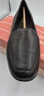 Brand: Easy Spirit Style: Devitt 10 womens slip-on loafer flats from the Easy Spirit e360 comfort line. Color: Dark brown; size: Womens 9.5 W (wide width) as marked on outsole and box. Materials: Leather upper, fabric lining, cushioned insole with raised comfort pods, rubber outsole. Details: Slip-on design with elastic side goring, low wedge heel, super lightweight construction, comfort cushioning, ultra flexible sole, subtle embossed e logo at heel. Style/Model code on box: DEVITT10. UPC: 191656786032. Includes original Easy Spirit box, which shows light scuffing and corner wear from storage.