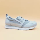 Easy Street Women Grey Leather McKinley Slip Resistant Oxford Sneakers Size 5.5M New with box Leather & fabric upper Outside zipper Bungee lace closure Round toe Fabric lining Removable anti-microbial footbed with arch support 1" EVA midsole Slip &-oil resistant rubber sole