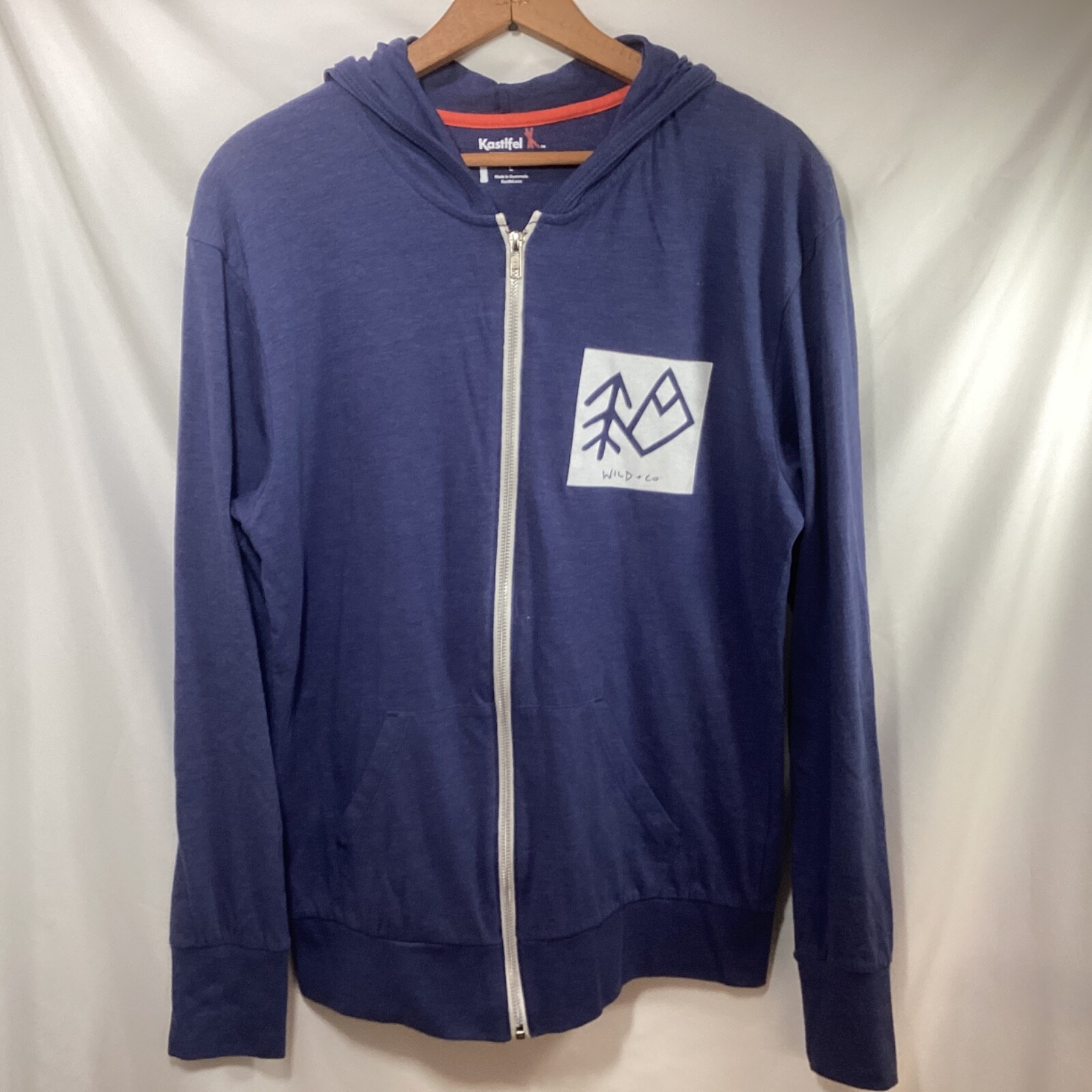 Tee Shirt Full Zip Hoodie Made from Recycled Bottles Blue Lightweight Size Large Pre-owned in Excellent Condition. Please see photos for condition, quality and size details. 179B11/3/02253