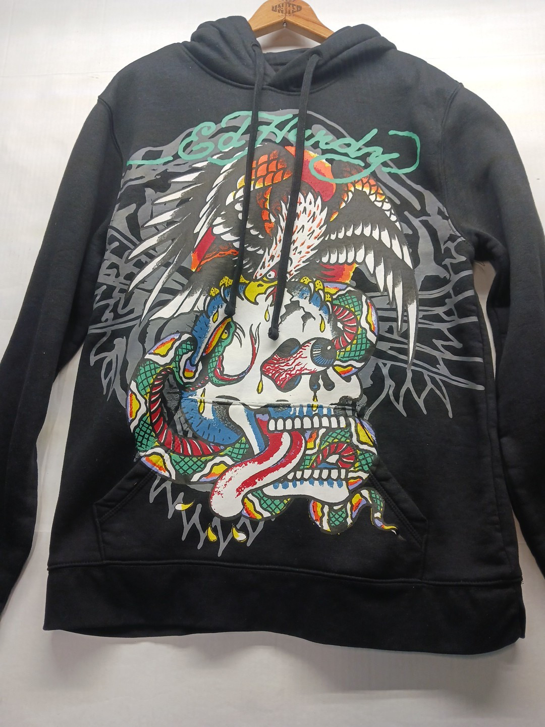 Ed Hardy Pullover Men's Size M Black Fleece Hoodie Eagle Skull Graphic