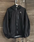 Eddie Bauer Mountain Guide soft-shell jacket men’s Size Small First Ascent Black Seam-sealed Weatheredge® Pro nylon shell Waterproof and breathable Stormrepel® super DWR finish Packs into chest pocket Adjustable hood fits with or without a helmet Ultralight Regular fit Designed to fit over midweight layers Breathability