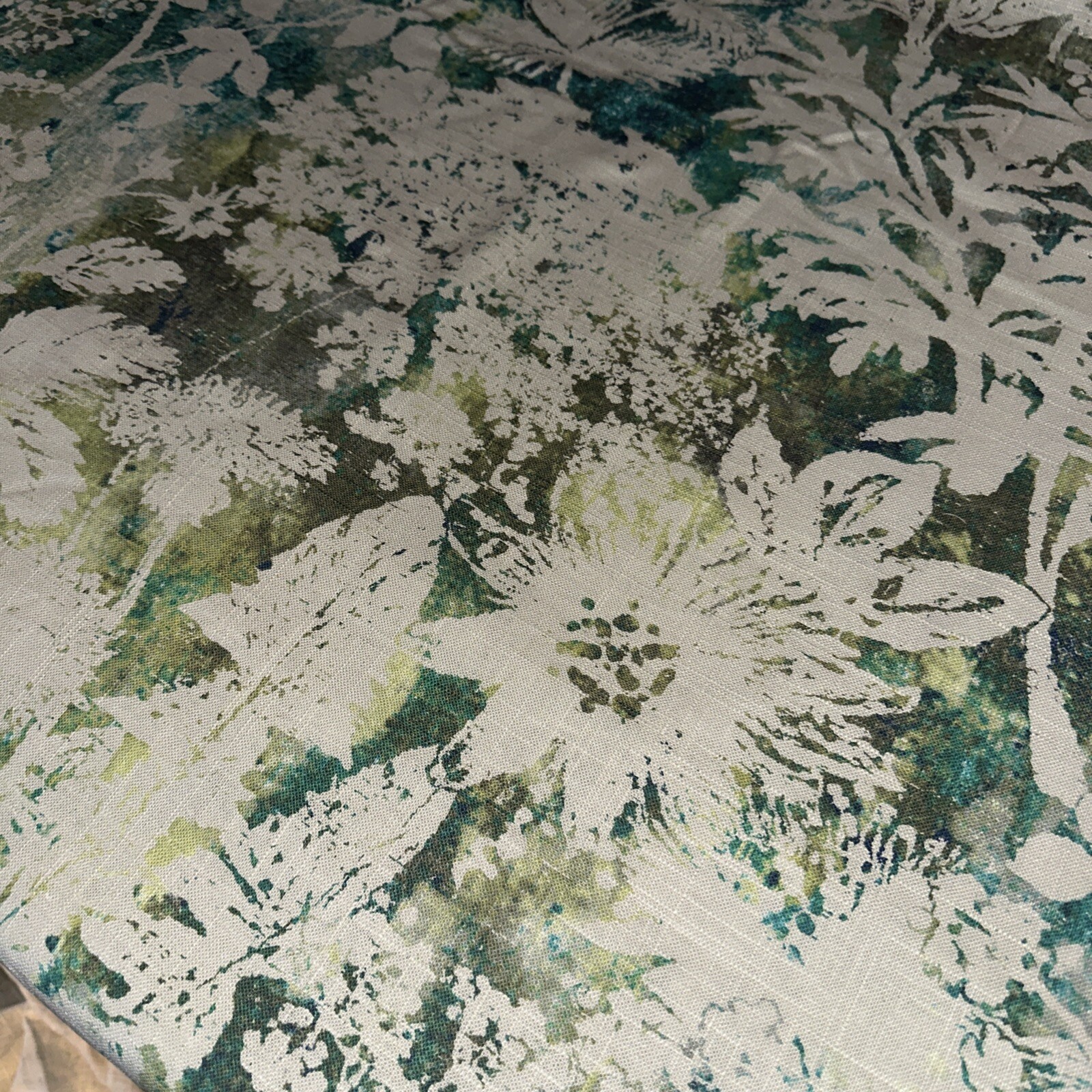 Crafted by the renowned Edinburgh Weavers, the OASIS Forest Floral fabric is a quintessential choice for those seeking to infuse a touch of nature into their home interiors. This charming linen fabric, boasting a rich charcoal and indigo floral pattern, is composed of 100% cotten linen ensuring both durability and a soft, natural feel. With a width of 140 cm and available in a generous length of 4 metres , this versatile fabric is ideal for an array of projects. It is medium-weight, making it suitable for cushions, loose covers, lampshades, and roman blinds, among other soft furnishings and upholstery applications. The hard-wearing quality ensures that it stands up to both use and washing, maintaining its elegant appearance.